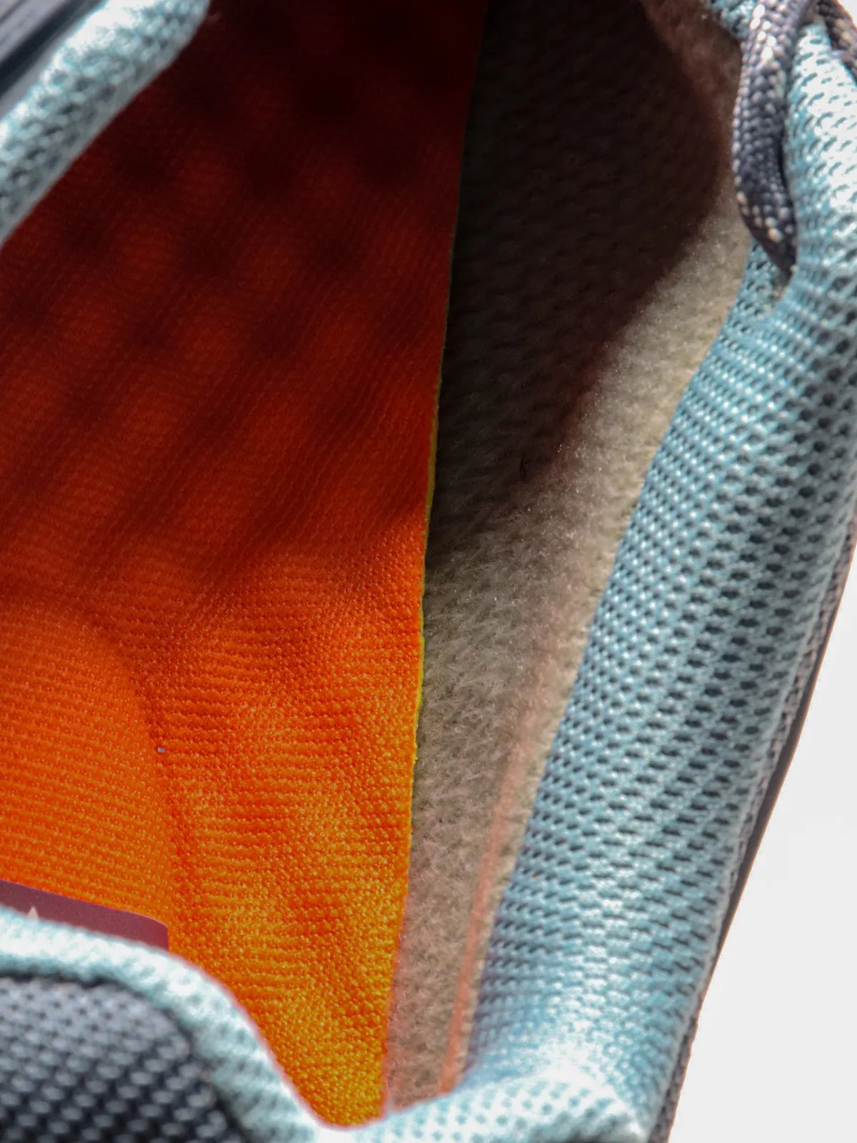 - Противоскользящая подошва – дизайн подошвы вдохновлен логотипом бренда, что обеспечивает надежное сцепление на разнообразных поверхностях и легкость в движении по сложным маршрутам.