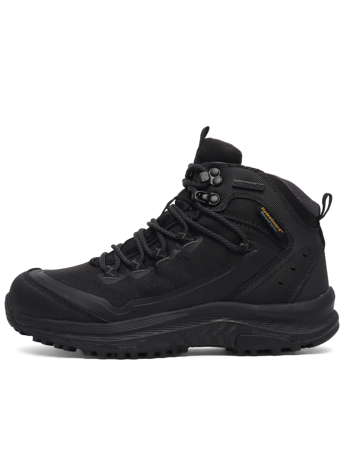 Дизайн и материалы: Верх обуви выполнен из качественного текстиля с применением технологии Waterproof, которая надежно защищает ноги от влаги при небольшом дожде, сохраняя стопы сухими. Утеплитель Thinsulate 200г представляет собой полотно, в котором плотно размещены олефиновые и полиэфирные волокна. Благодаря такой структуре и связанному воздуху, Thinsulate эффективно сохраняет тепло и не пропускает холод снаружи, обеспечивая отличную теплоизоляцию. За сухость стопы отвечает мембрана HydroGuard, которая удерживает воду снаружи, но позволяет влаге испаряться изнутри.
