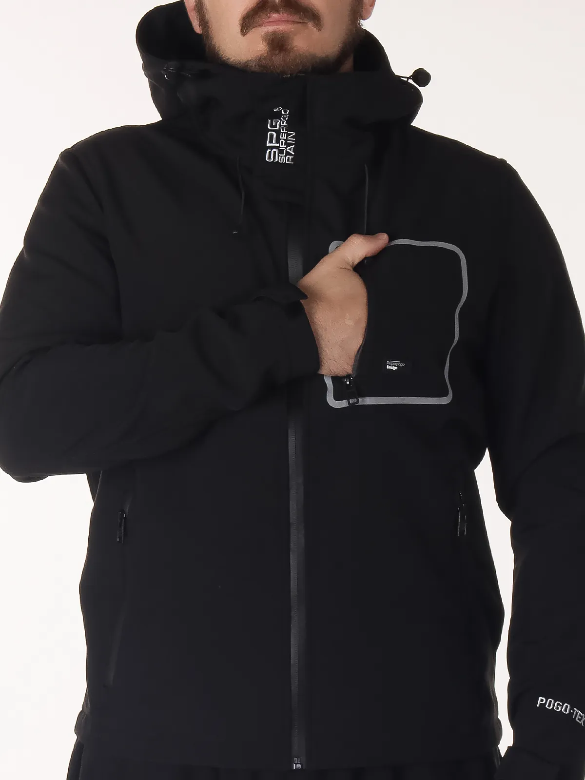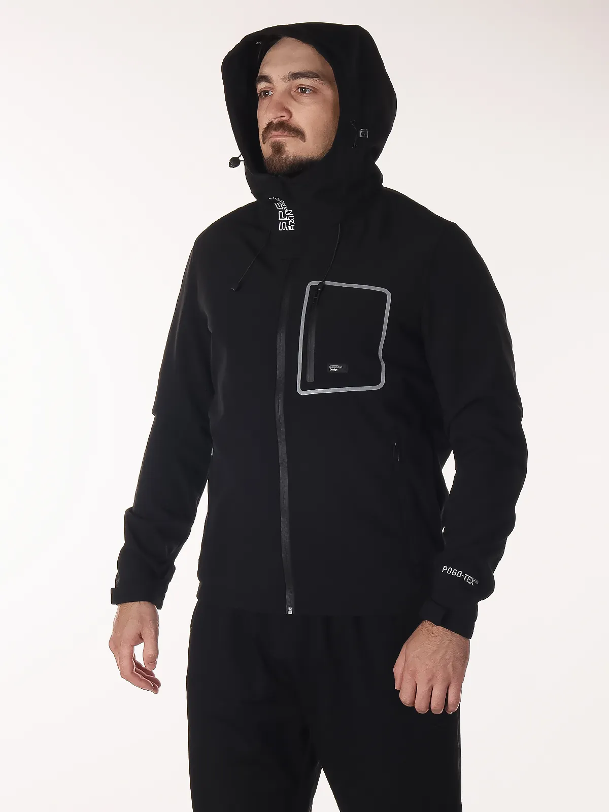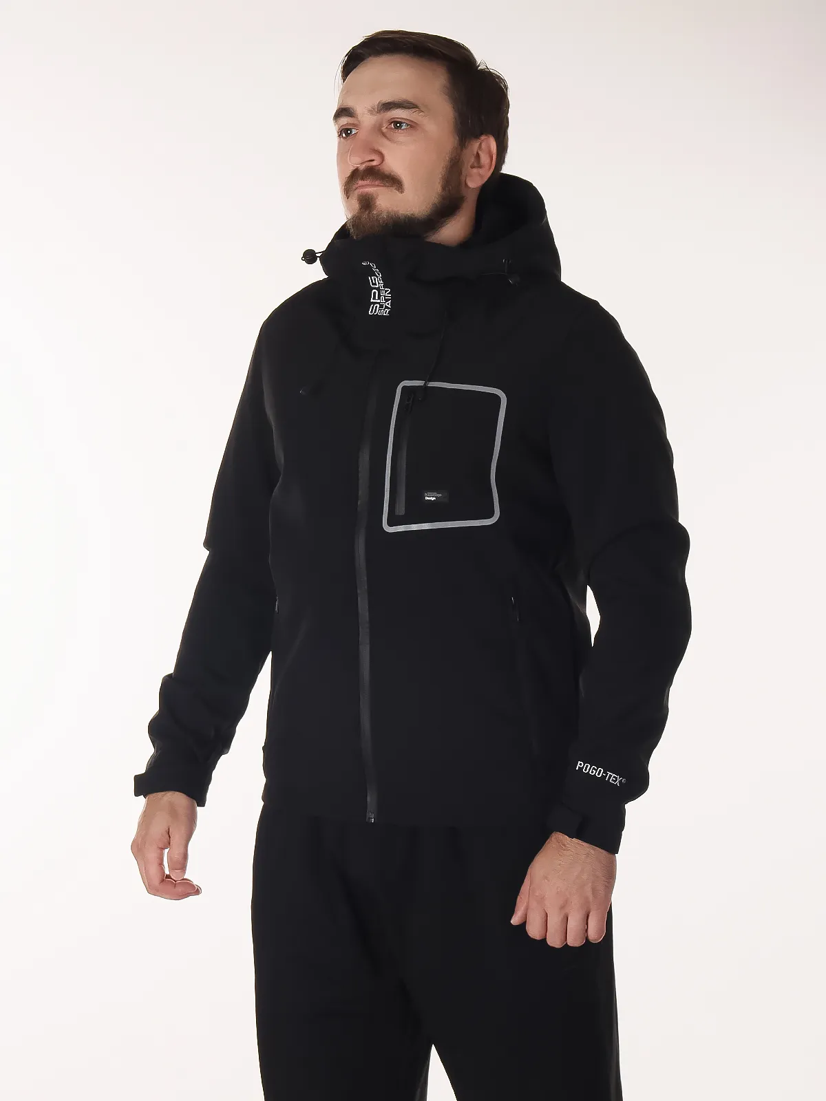 - Защита от непогоды: несъёмный капюшон и манжеты на липучке обеспечивают дополнительную защиту от ветра и дождя, позволяя регулировать прилегание.