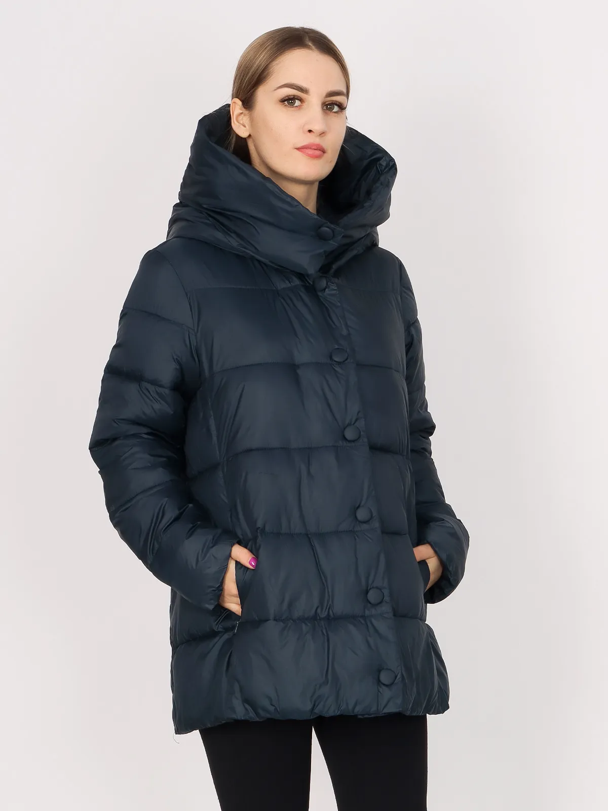 Центральная застежка на кнопках обеспечивает удобство при застегивании и снимании куртки, при этом сохраняя ее стильный внешний вид.
