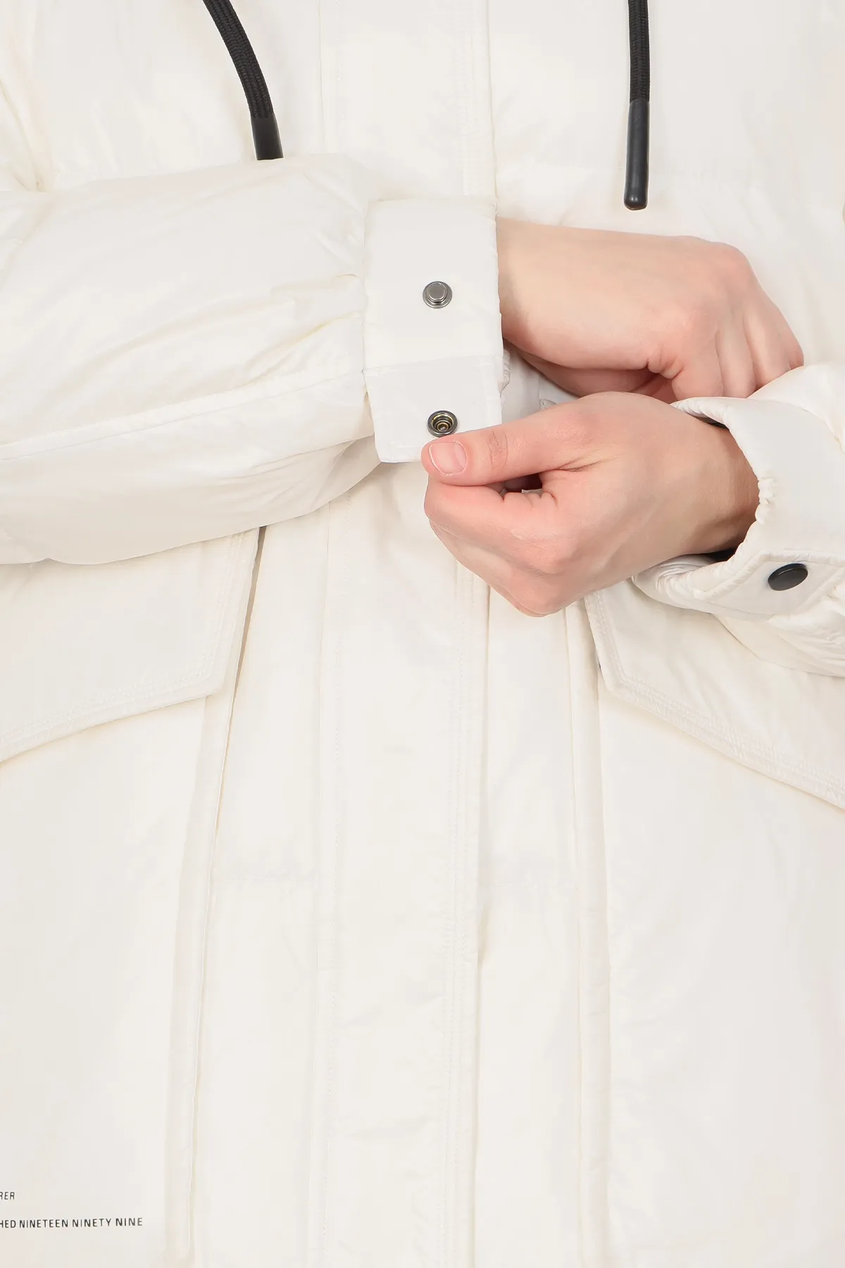 - Утеплитель: натуральный пух (80% пух, 20% перо) плотностью 100 г/кв.м. поддерживает температурный режим от 0 °C до -30 °C (указанный температурный режим носит рекомендательный характер, комфорт при носке зависит от индивидуальных особенностей организма, особенностей региона, уровня физической активности, времени нахождения на улице и использование послойного принципа экипировки).