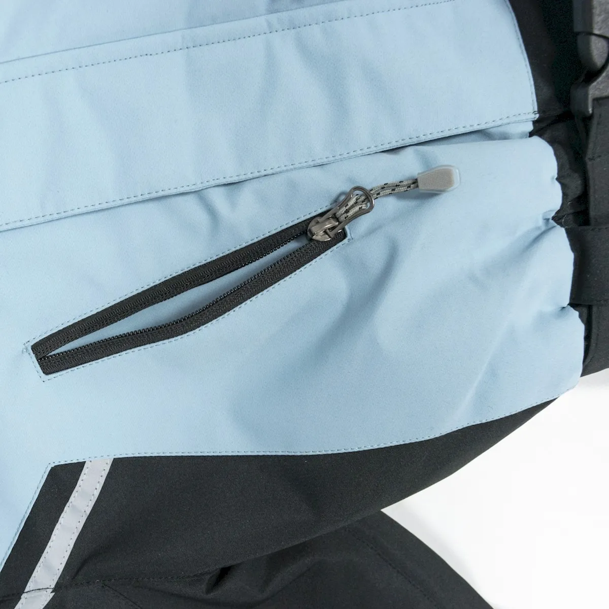 - Рукава на липучке, манжеты с пальчиком, в брюках противоснежные манжеты на ботинки.- Вставки из Cordura, пояс.
