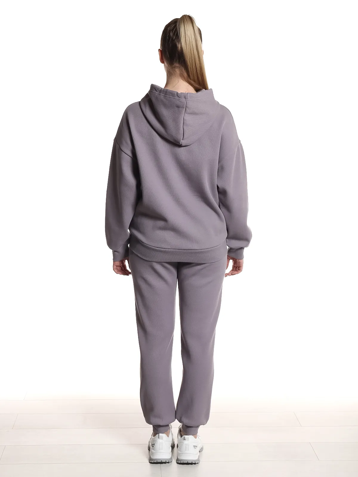 Худи оснащено капюшоном и удобным карманом-кенгуру, что делает его функциональным и практичным. Брюки имеют несколько карманов и эластичный пояс, обеспечивающий удобную посадку. На штанах и кофте предусмотрены манжеты, которые добавляют комфорта и защищают от холода.