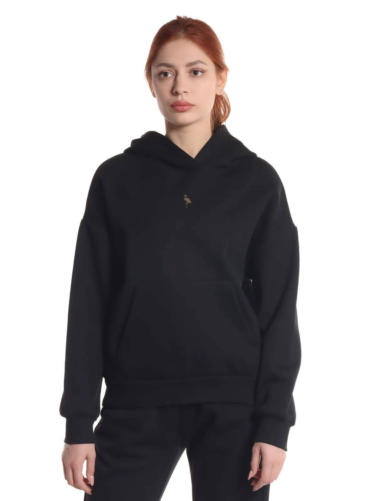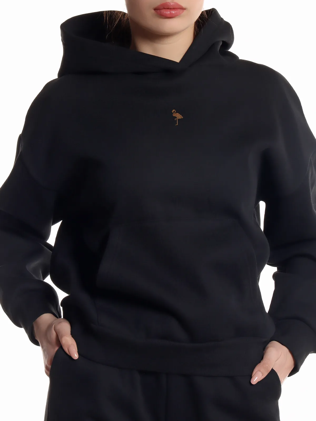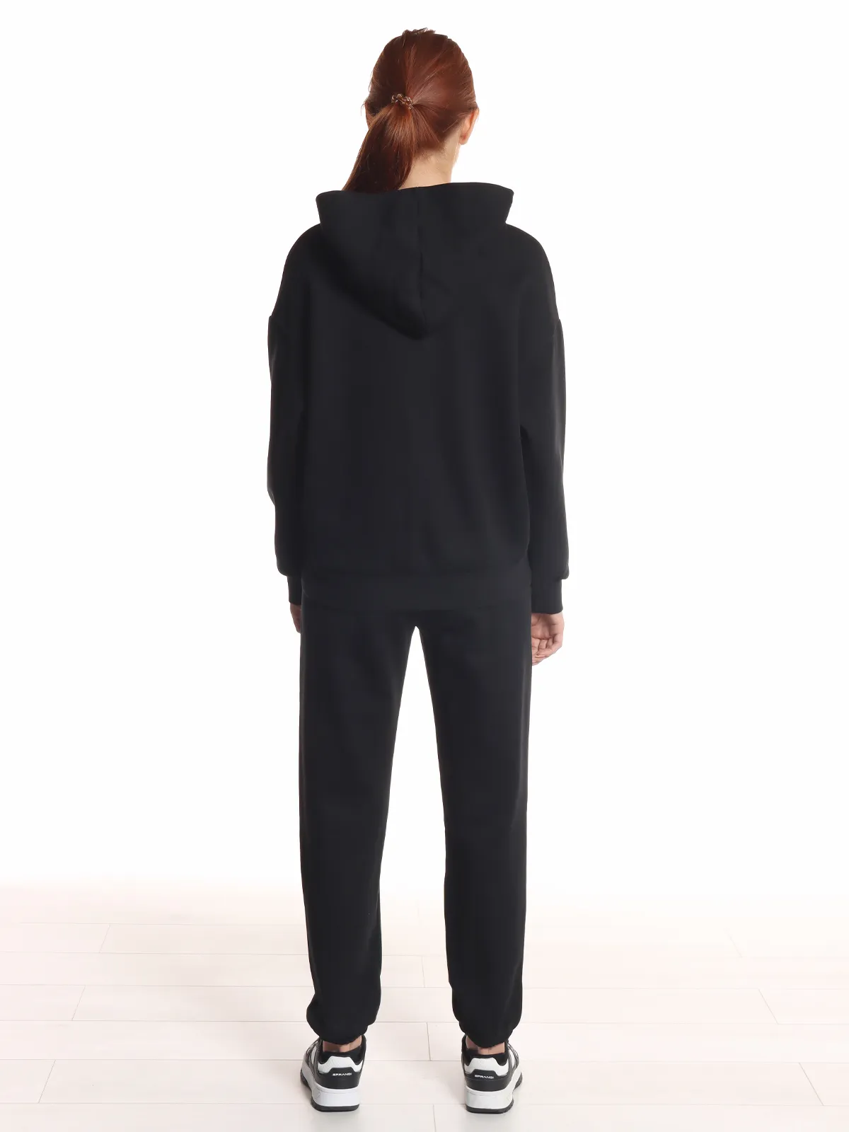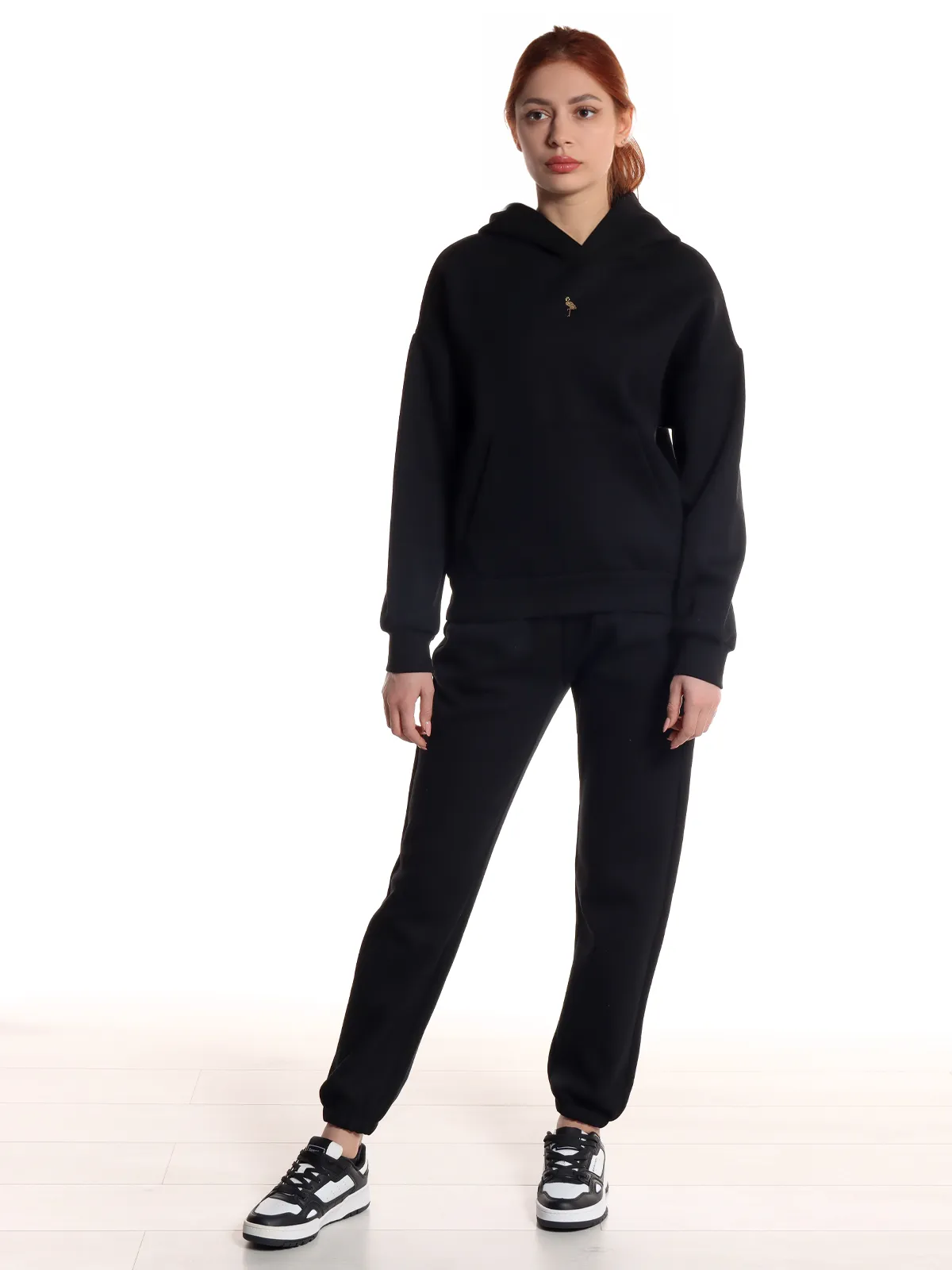 Худи оснащено капюшоном и удобным карманом-кенгуру, что делает его функциональным и практичным. Брюки имеют несколько карманов и эластичный пояс, обеспечивающий удобную посадку. На штанах и кофте предусмотрены манжеты, которые добавляют комфорта и защищают от холода.