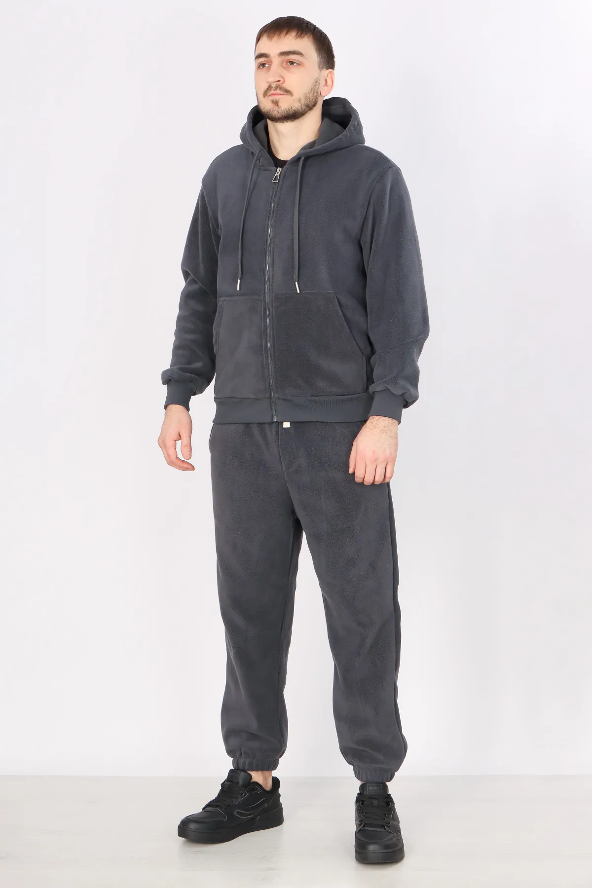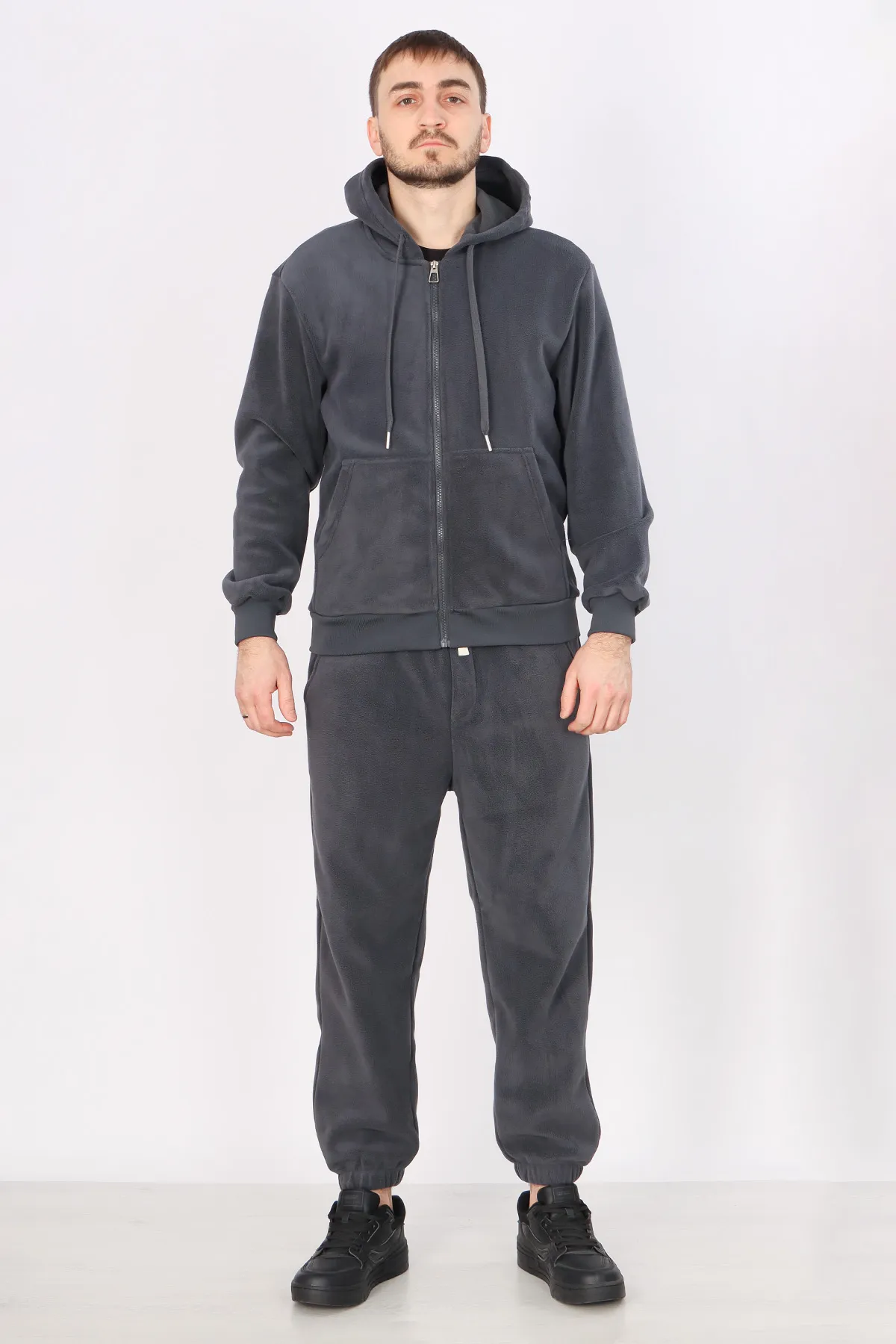 Комплект включает толстовку на молнии и брюки на манжетах. Толстовка выполнена из мягкого и теплого флиса, оснащена несъемным капюшоном и удобными карманами. Брюки имеют манжеты и регулируемую шнуровку, что обеспечивает идеальную посадку. На брюках также предусмотрены боковые и задний карманы для дополнительного удобства.