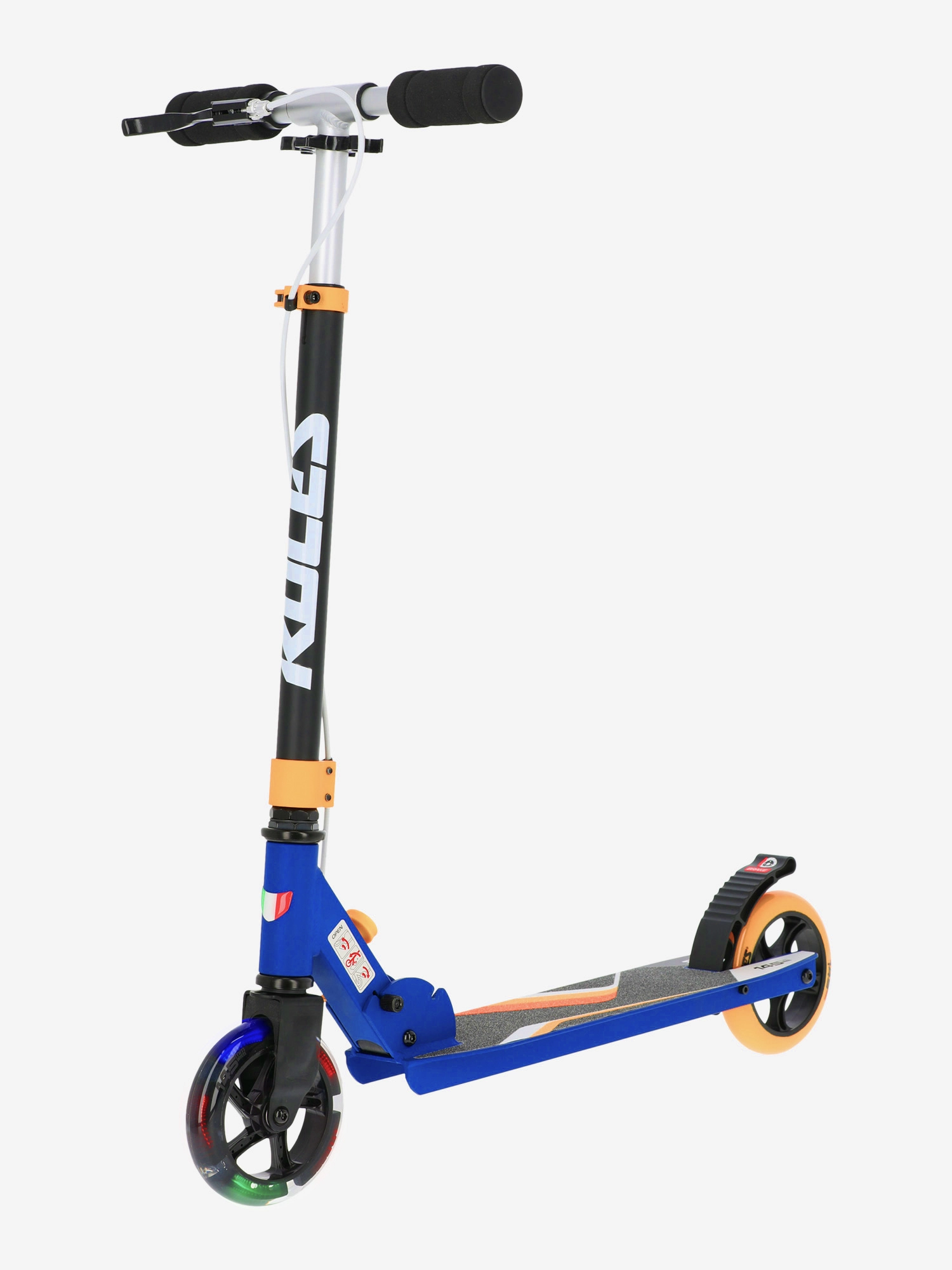 - Светящиеся колеса: переднее колесо с LED-подсветкой делает самокат заметным на дороге.