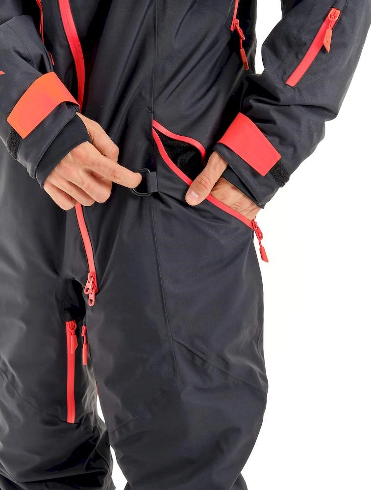 Комфортная посадка позволит в полной мере оценить очередной спуск и даст больше возможностей и лёгкости при выполнении трюков. Сшит из мембранной ткани TORAY DELFY (Япония). За счёт специального спортивного гидрофобного утеплителя нового поколения СЛАЙТЕКС ПРЕМИУМ комбинезон пропускает пар и не впитывает влагу. Тело «дышит» даже при интенсивных нагрузках. Поверхность утеплителя обработана термически (каландрирована), что предотвращает миграцию волокон. Изнутри спина утеплена мягкой тканью полибраш. Отличительная особенность – поперечная молния в нижней части спины, прозванная в народе "бомболюк". Позволяет легко и быстро открыть низ, не снимая при этом весь комбинезон. Молния защищена внешним и внутренним клапаном.