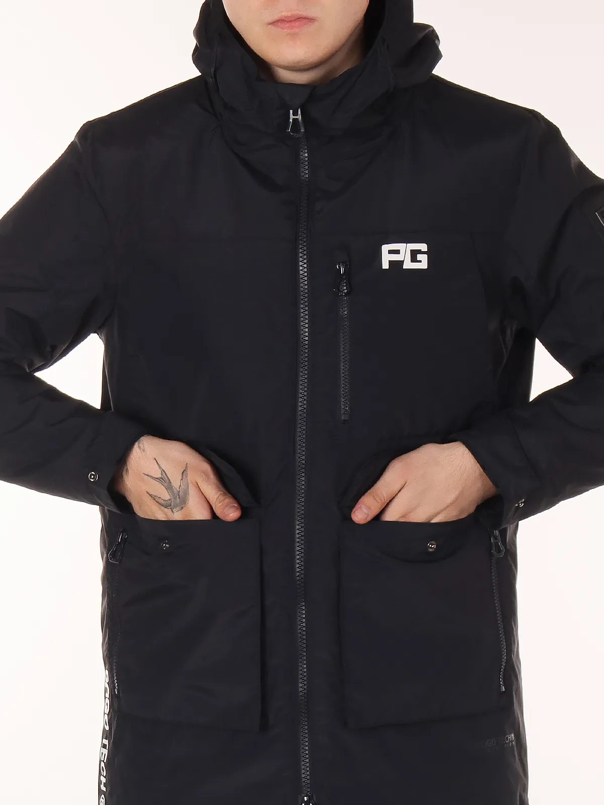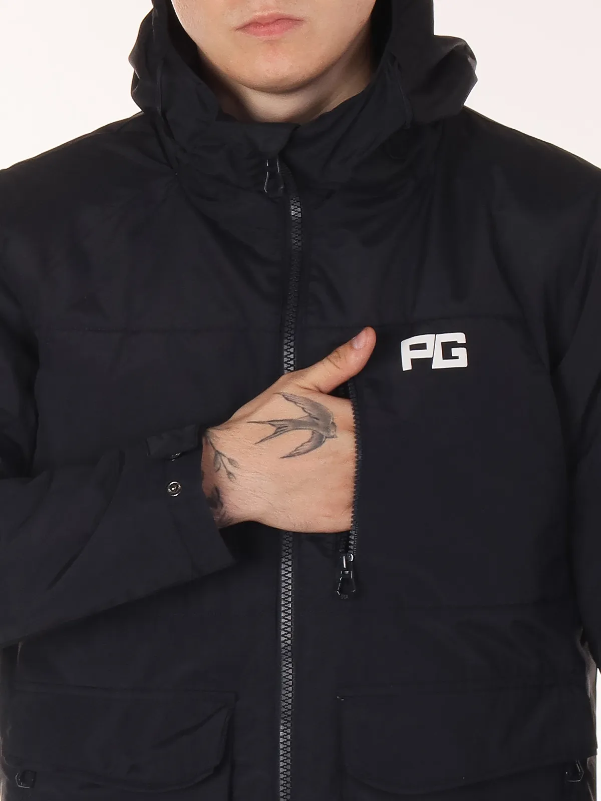 Super Pogo продумана до мелочей: боковые карманы на молнии, два накладных кармана на заклепке, нагрудной карман и внутренний карман обеспечивают удобное размещение личных вещей. Встроенная лямка позволяет носить куртку на плечах, как рюкзак, а регулируемый пояс на кулиске помогает адаптировать посадку под фигуру и удерживать тепло.