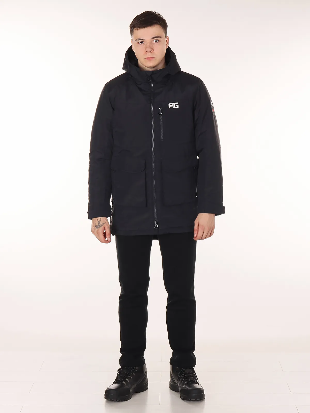 - Капюшон: несъемный — дополнительная защита от ветра и осадков.