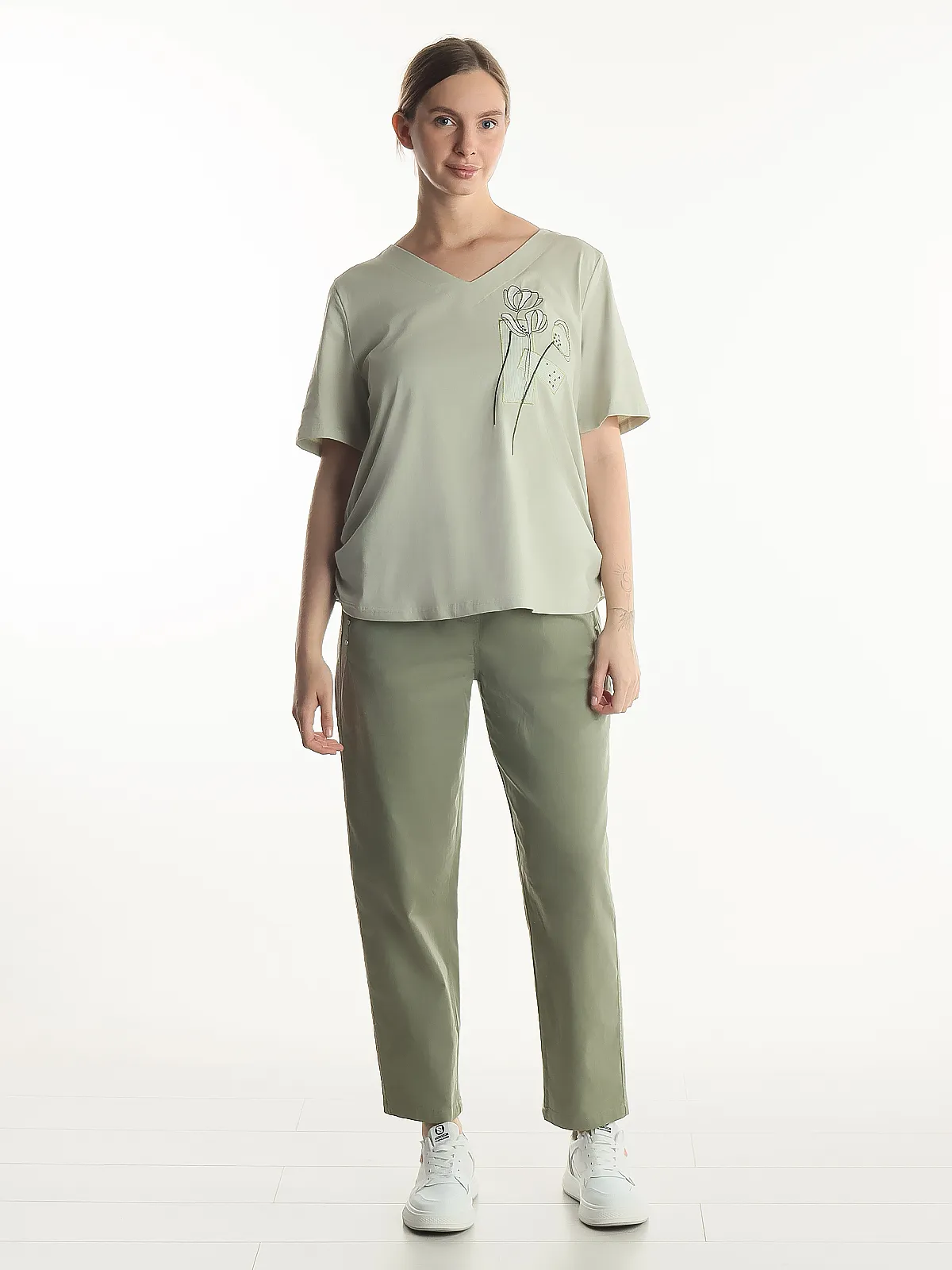 - Материал: выполнена из смеси хлопка и спандекса, что обеспечивает мягкость, эластичность и приятные тактильные ощущения, гарантируя максимальный комфорт в течение всего дня.
