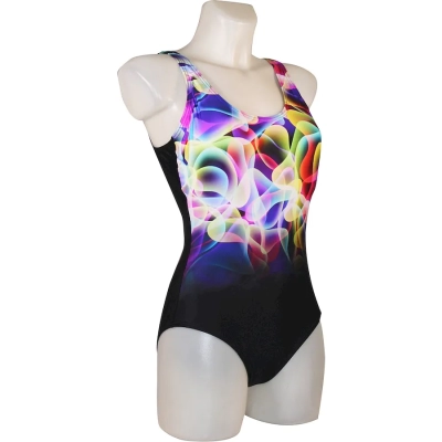 Плотная стрейч-ткань женского спортивного купальника отлично тянется, не просвечивает и обеспечивает комфорт во время плавания в бассейне или на пляже, не сковывая движения.