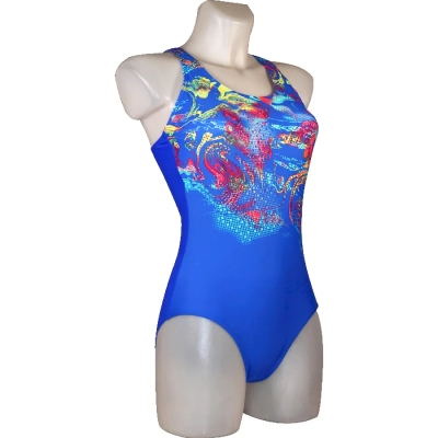 Плотная стрейч-ткань женского спортивного купальника отлично тянется, не просвечивает и обеспечивает комфорт во время плавания в бассейне или на пляже, не сковывая движения.