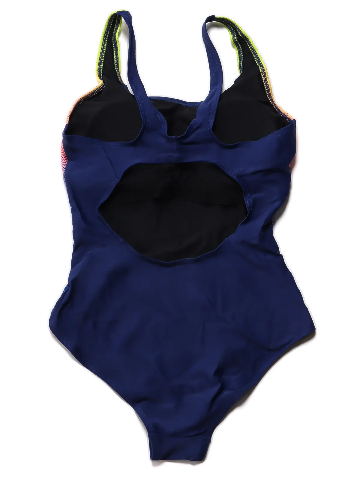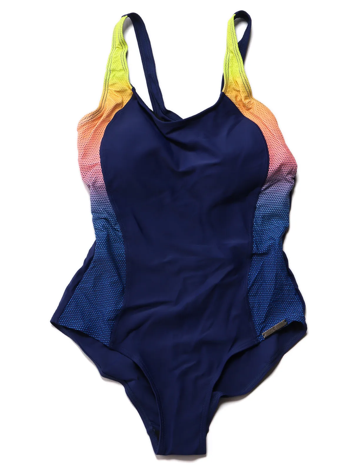 Плотная стрейч-ткань женского спортивного купальника отлично тянется, не просвечивает и обеспечивает комфорт во время плавания в бассейне или на пляже, не сковывая движения.
