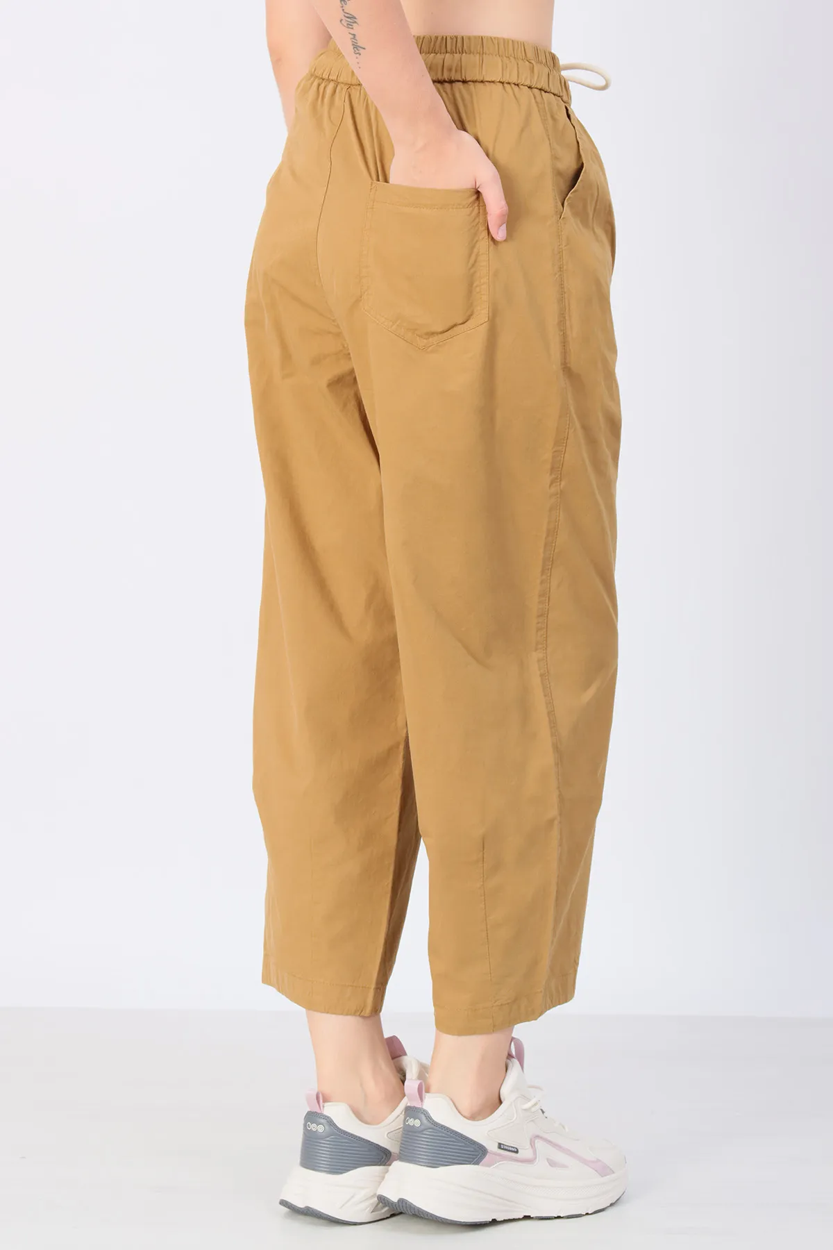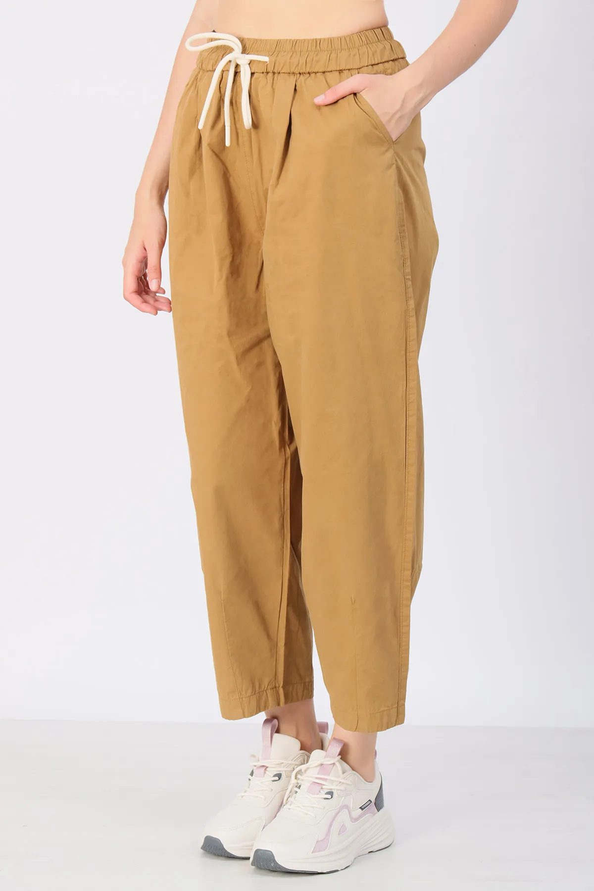Пояс на резинке с возможностью регулировки шнурком обеспечивает удобную посадку и комфорт на протяжении всего дня.