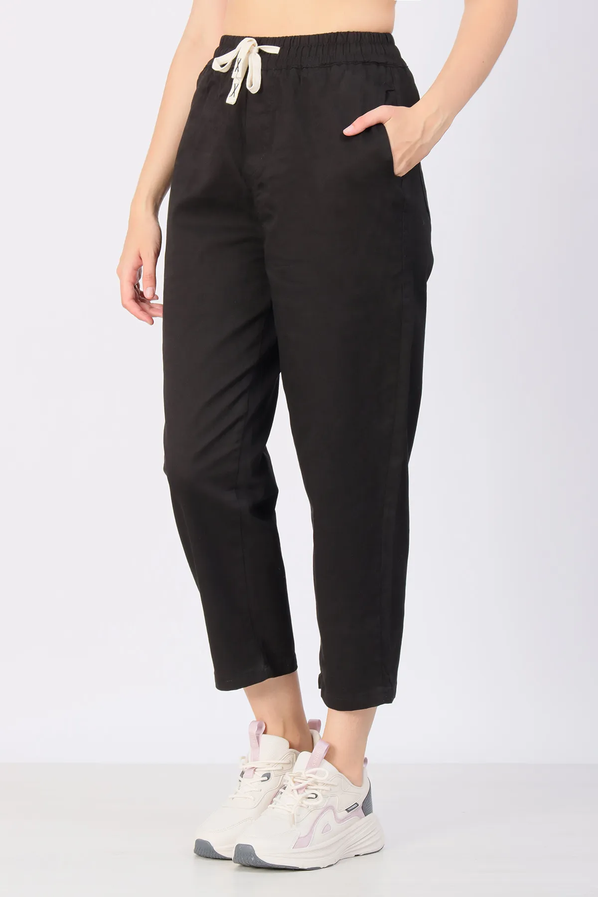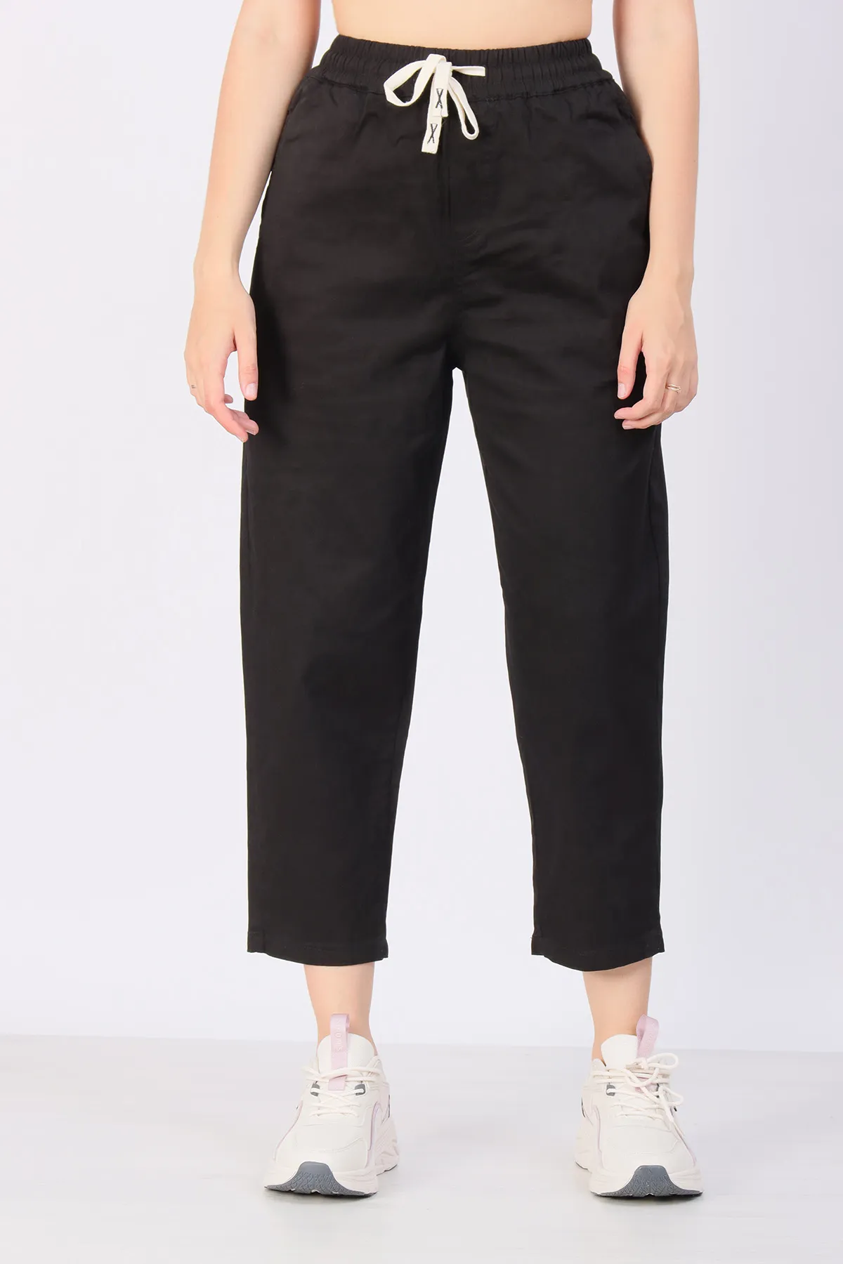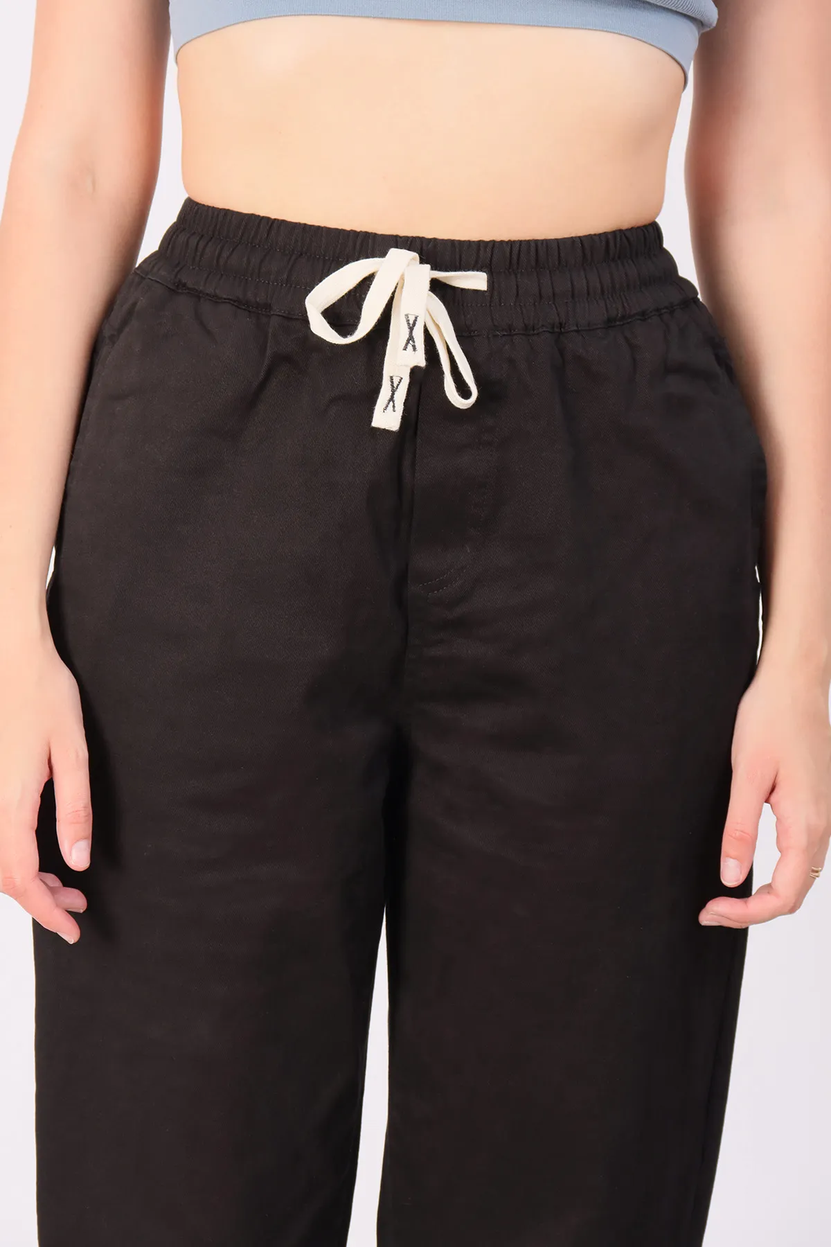 Пояс на резинке с возможностью регулировки шнурком обеспечивает удобную посадку и комфорт на протяжении всего дня.