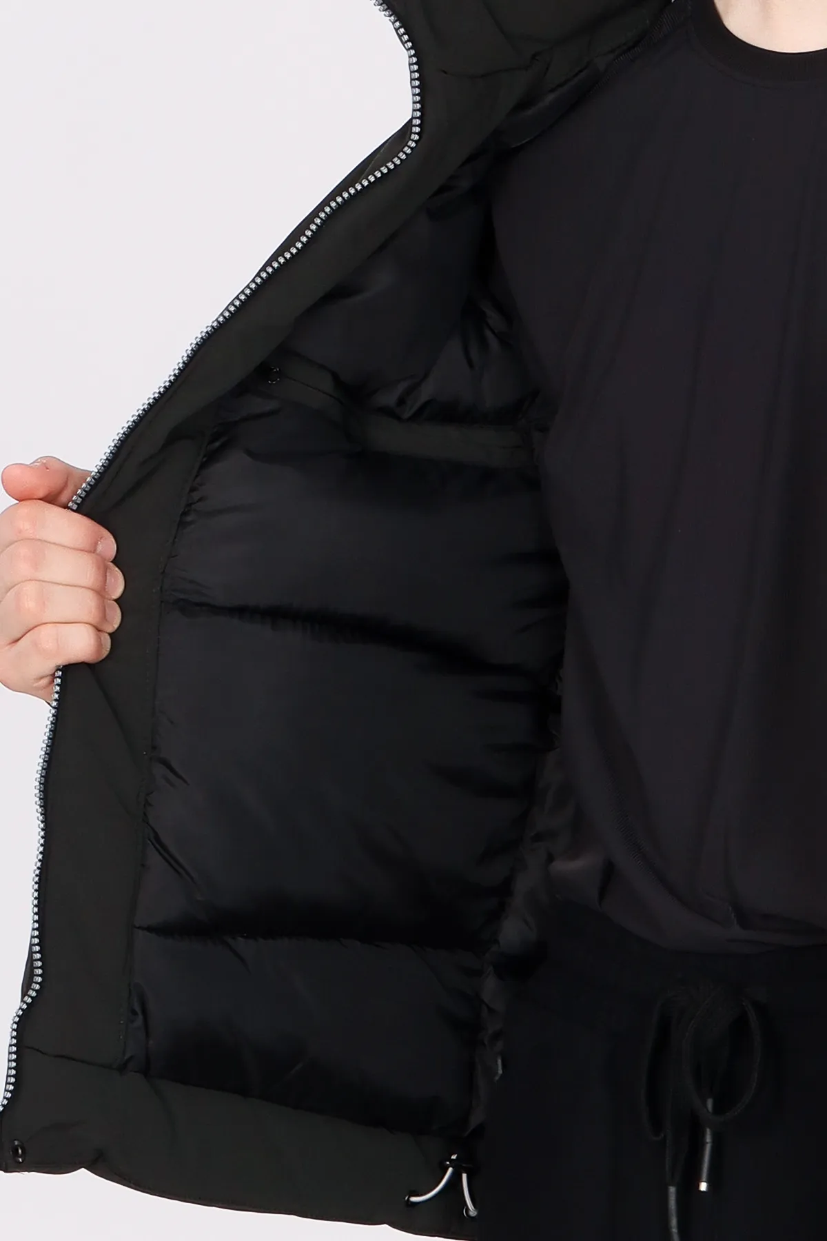 Кулиса по нижнему краю позволяет регулировать посадку куртки, предотвращая проникновение холода и обеспечивая более плотную защиту от ветра.