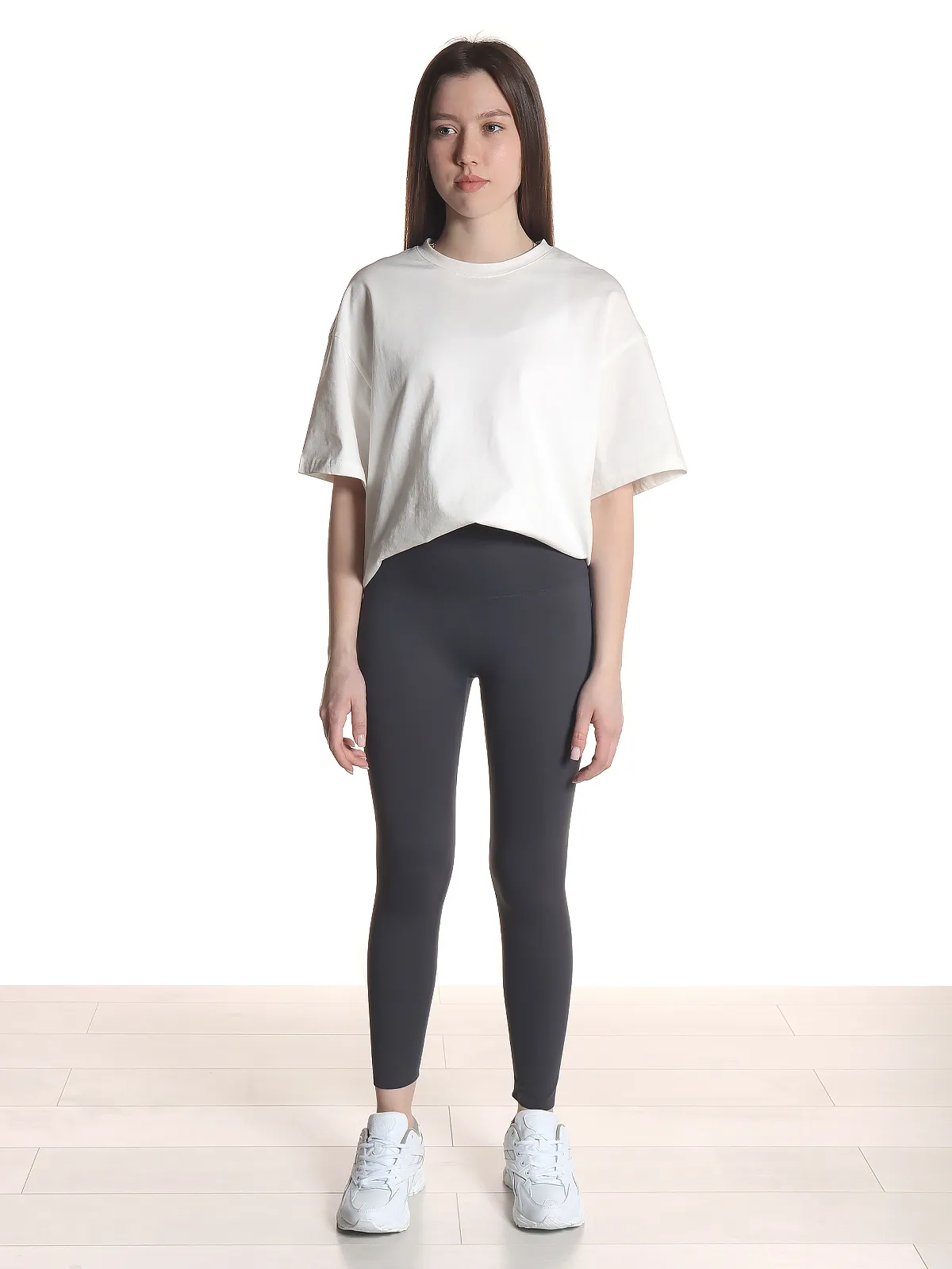 Леггинсы выполнены из мягкого и эластичного материала, в состав которого входят нейлон и лайкра. Такая комбинация обеспечивает отличную посадку по фигуре, сохраняет форму и дарит свободу движений. Широкий пояс плотно прилегает, не сдавливая живот и не смещаясь при активности, что делает модель особенно удобной.