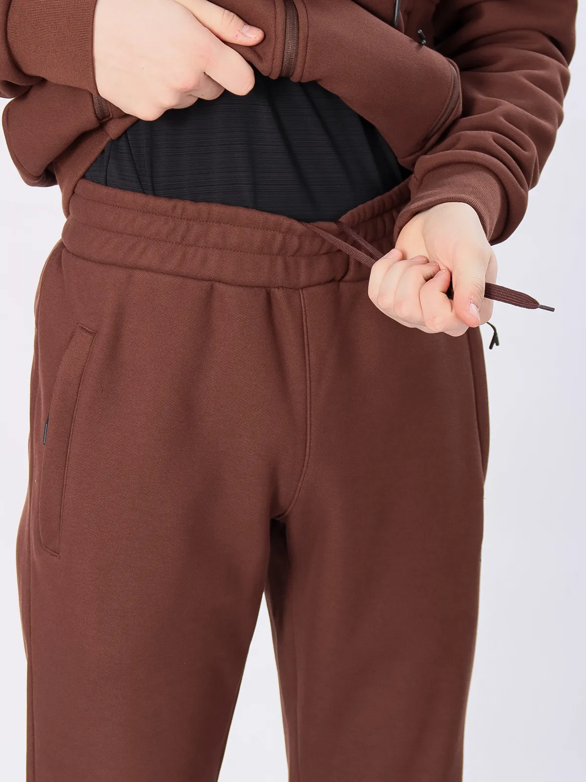 - Эластичный пояс с регулируемым шнурком на брюках