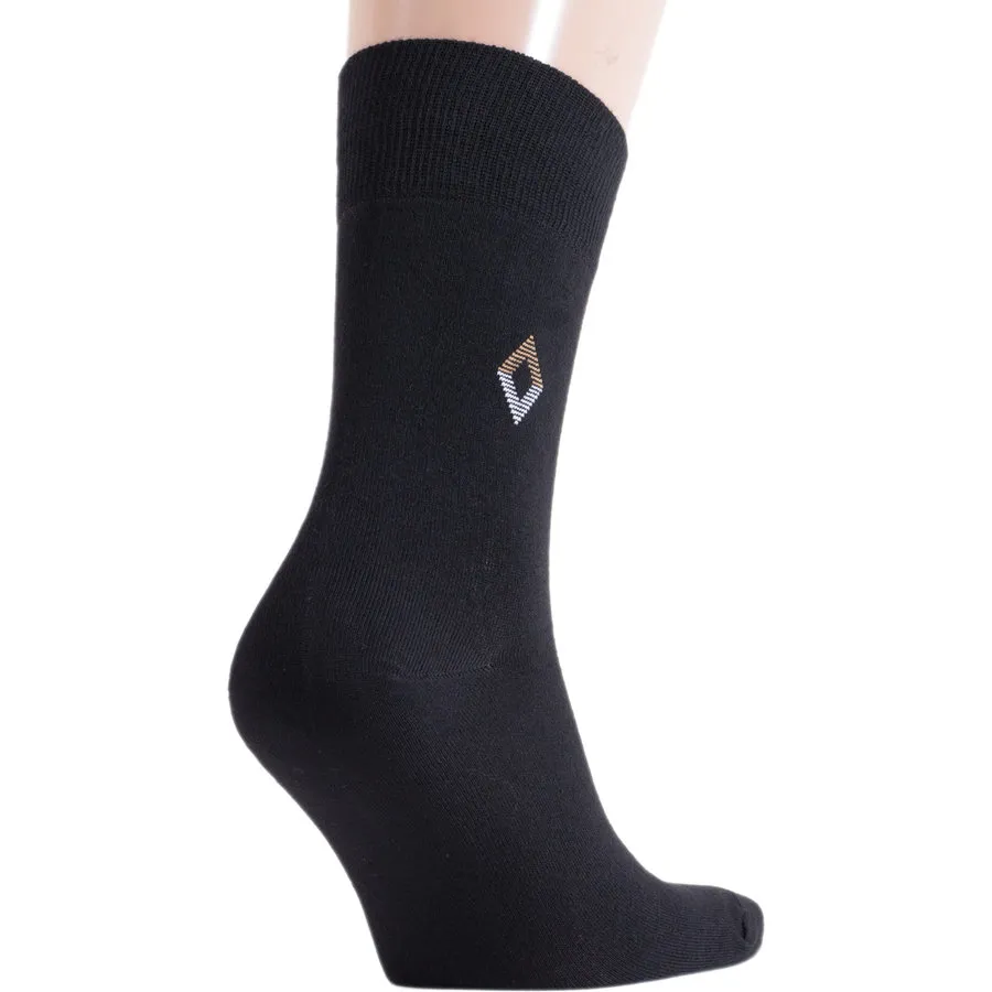 Мужские шерстяные носки классической длины. Однотонная модель оформлена небольшим узором вверху. Такие носки подойдут под любой стиль и позволят держать ноги в тепле в холодное время.