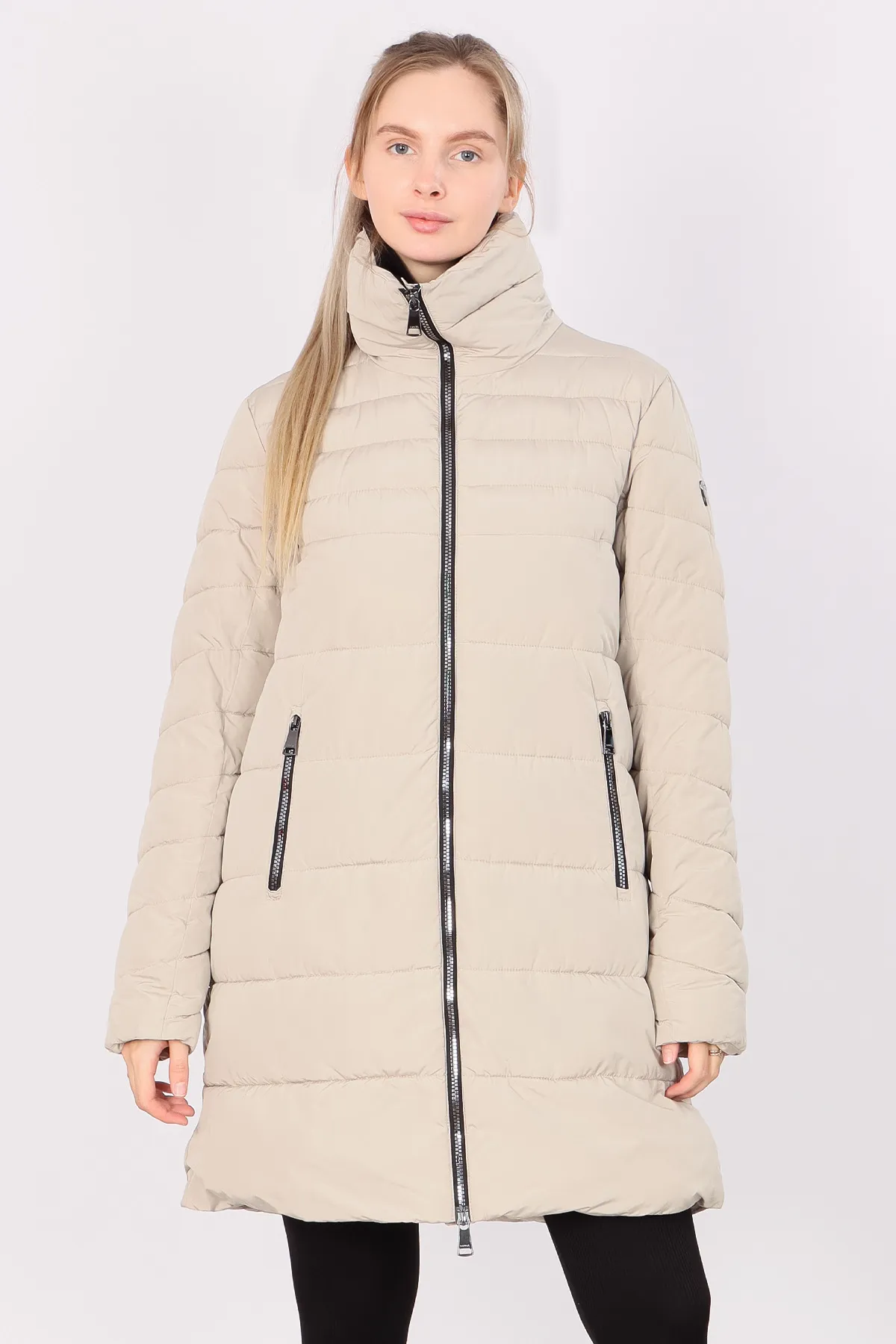Удлиненная модель куртки обеспечивает дополнительную защиту от холода, особенно в области поясницы. Боковые карманы на молнии и внутренний карман на молнии обеспечивают удобство для хранения мелочей и важных аксессуаров, сохраняя вещи в безопасности и доступности.