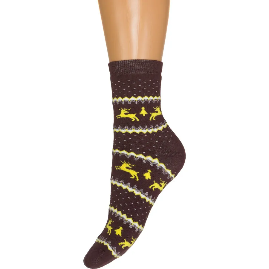 Носки зимние для женщин, махровые, "олени", полоска с точками.