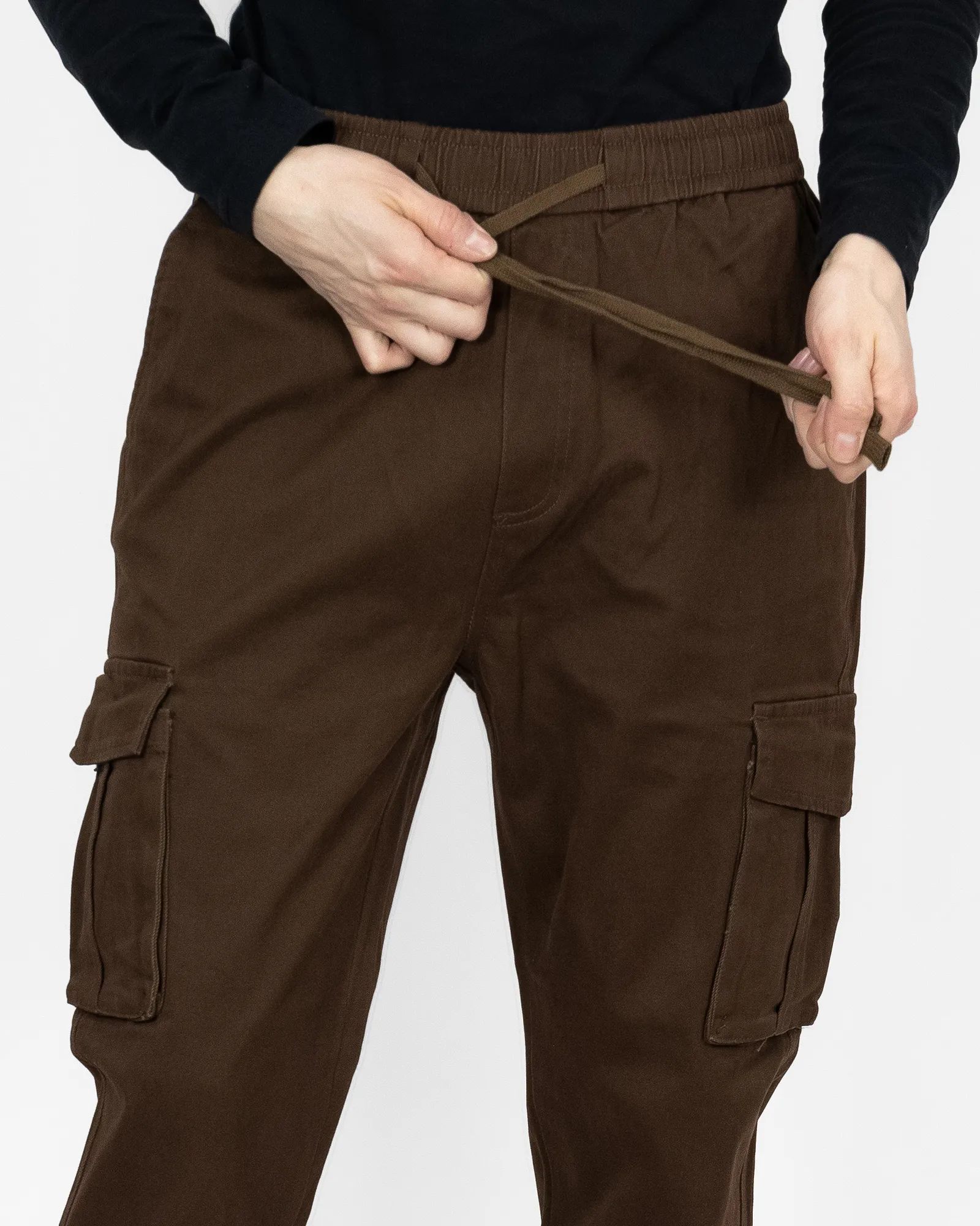 Пояс на эластичной резинке со шнурком обеспечивает надежную фиксацию и возможность регулировки по фигуре, а манжеты на резинке фиксируют брюки, предотвращая их подъем во время движения.