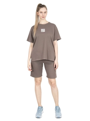 Костюм женский Niu-n — стильный и удобный комплект, состоящий из футболки и шорт. Этот комплект идеально подходит для прогулок, отдыха на даче или пляже, сочетая комфорт и универсальность.