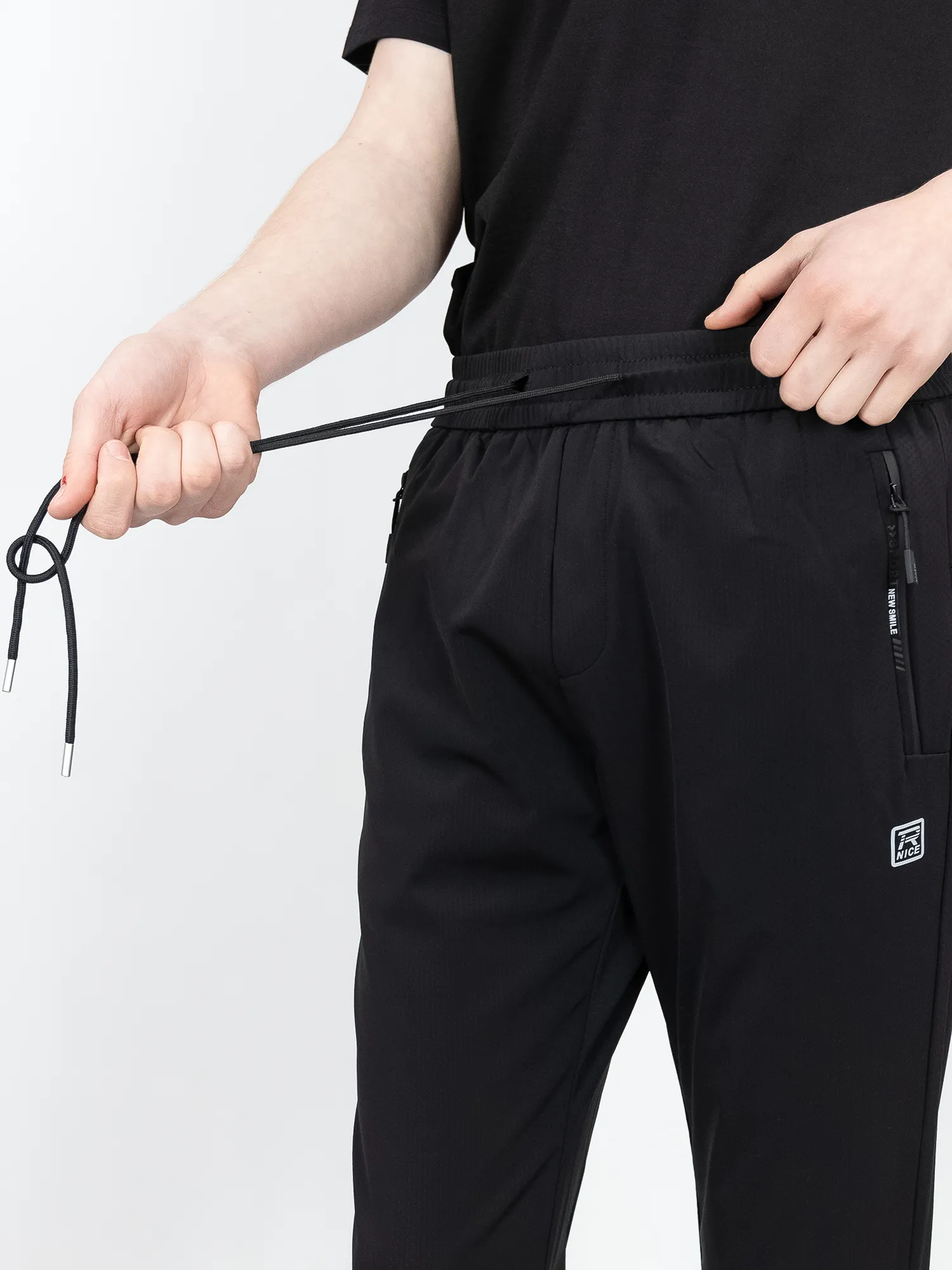 Особенность брюк – удобный пояс со шнурком, который позволяет регулировать плотность посадки и обеспечивает свободу движений. Карманы на молнии надежно хранят ваши личные вещи, предоставляя дополнительный комфорт и безопасность.