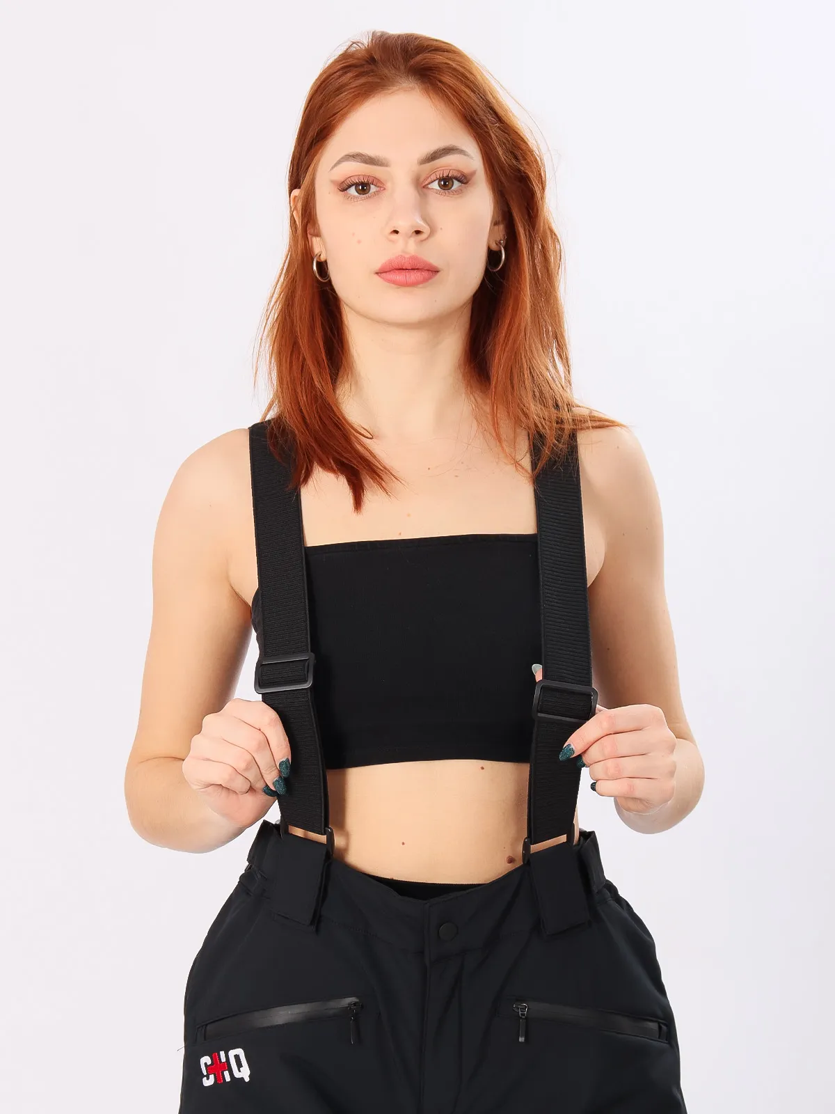 - Брюки эргономичного кроя с высокой съемной спинкой на лямках.
