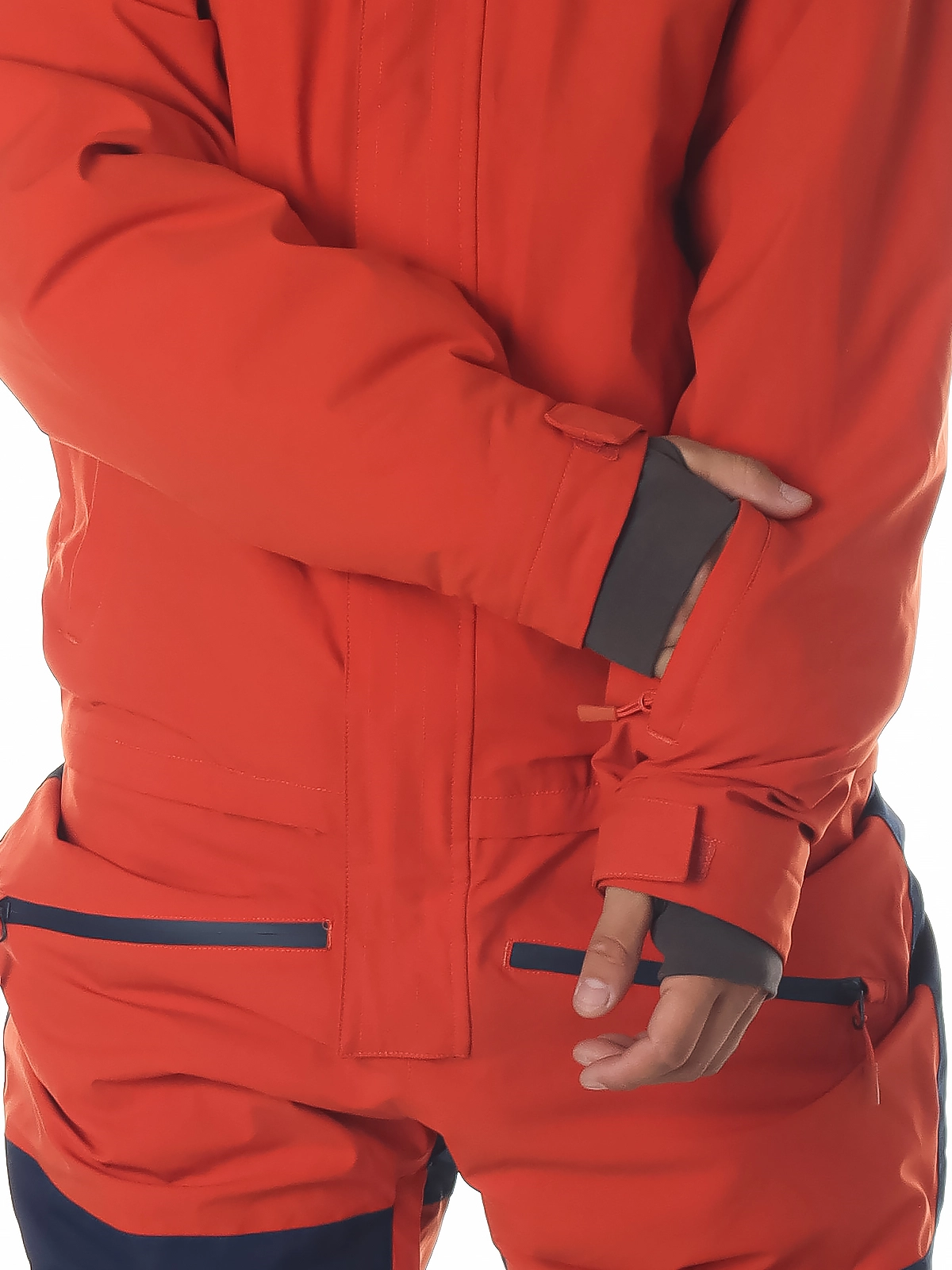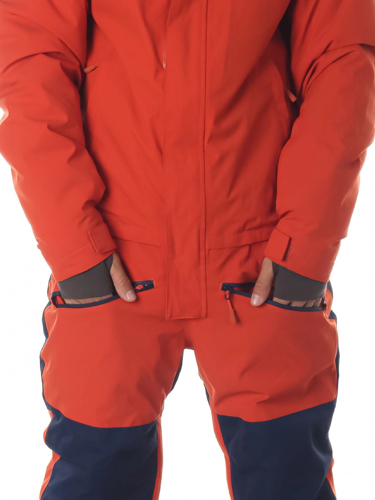 Комбинезон оснащен несъемным капюшоном с регулировкой, который защищает голову от непогоды. Ветрозащитная планка на липучке и эластичные манжеты через палец создают дополнительную защиту от холода и ветра, обеспечивая максимальный комфорт даже при сильном морозе или ветреной погоде.