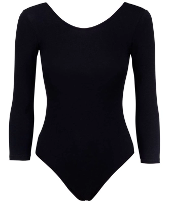Модель с округлым вырезом и рукавом 3\4. Купальник выполнен из качественного износостойкого хлопка, не теряет форму после стирки. Идеально подходит для занятий художественной гимнастикой или танцами, приятен к телу. Соответствует требованиям качества, предъявляемым к пошиву детской одежды. Цвет: черный.