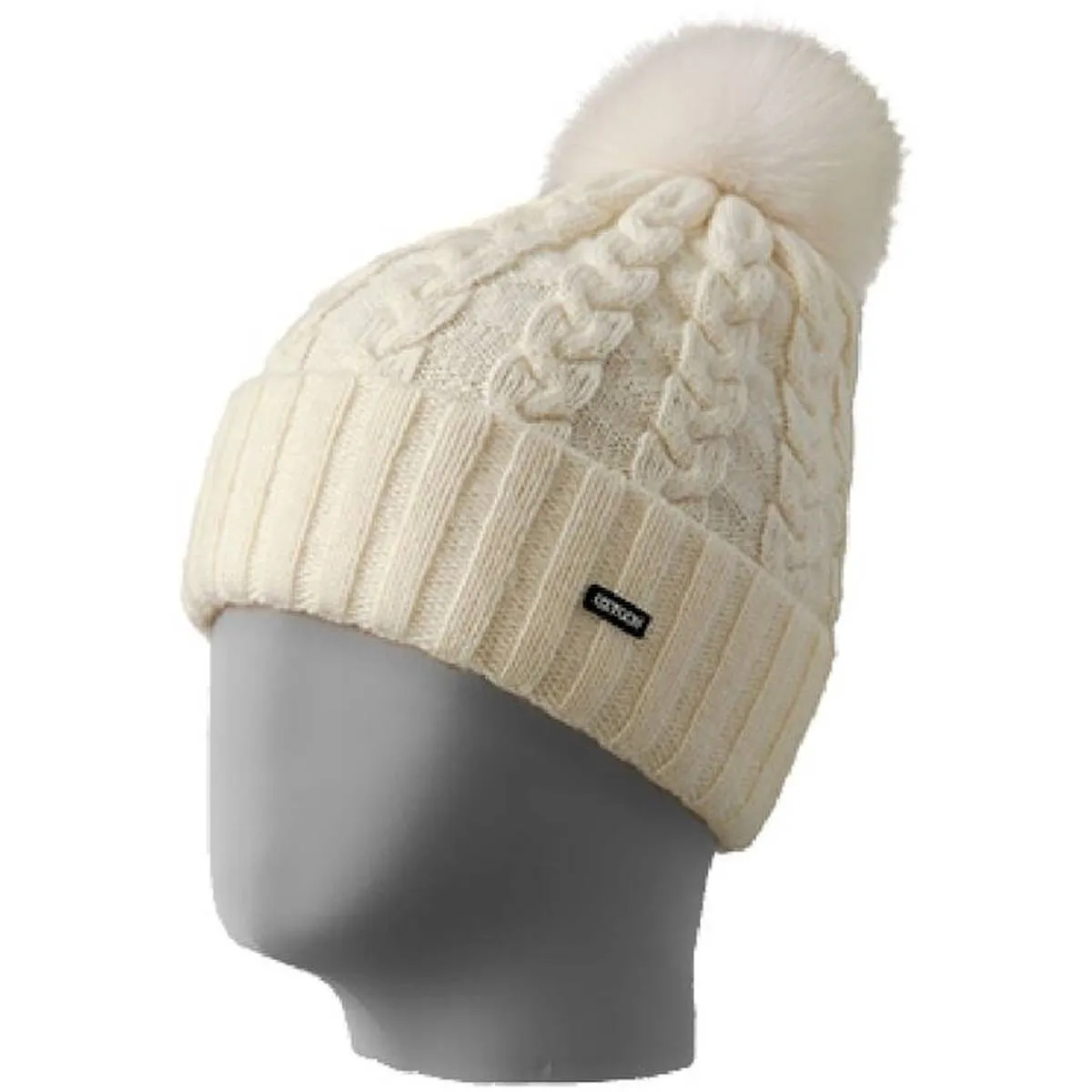 Meet - классическая женская шапка с косами, с отворотом и настоящим меховым помпоном.