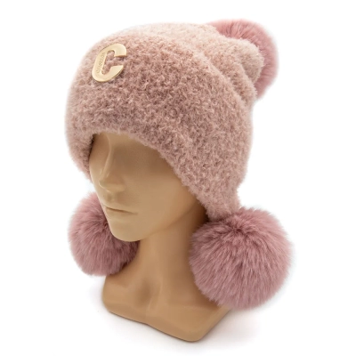 Женская стильная и практичная шапка-ушанка с тремя помпонами из эко меха. Утеплитель - искусственный мех, акрил. Декорирована металлической буквой "С". Теплая и уютная шапка с ушами отлично подойдет к стильному повседневному образу, она не мнётся и всегда сохраняет форму.