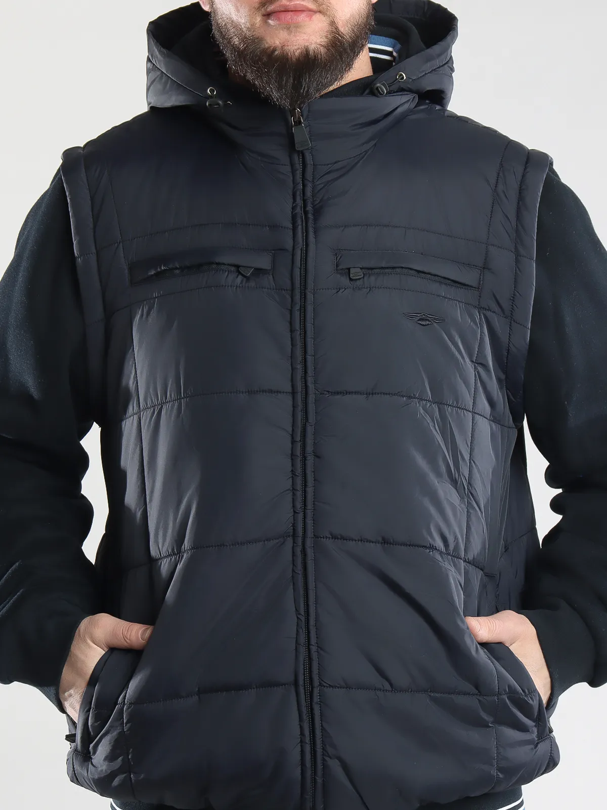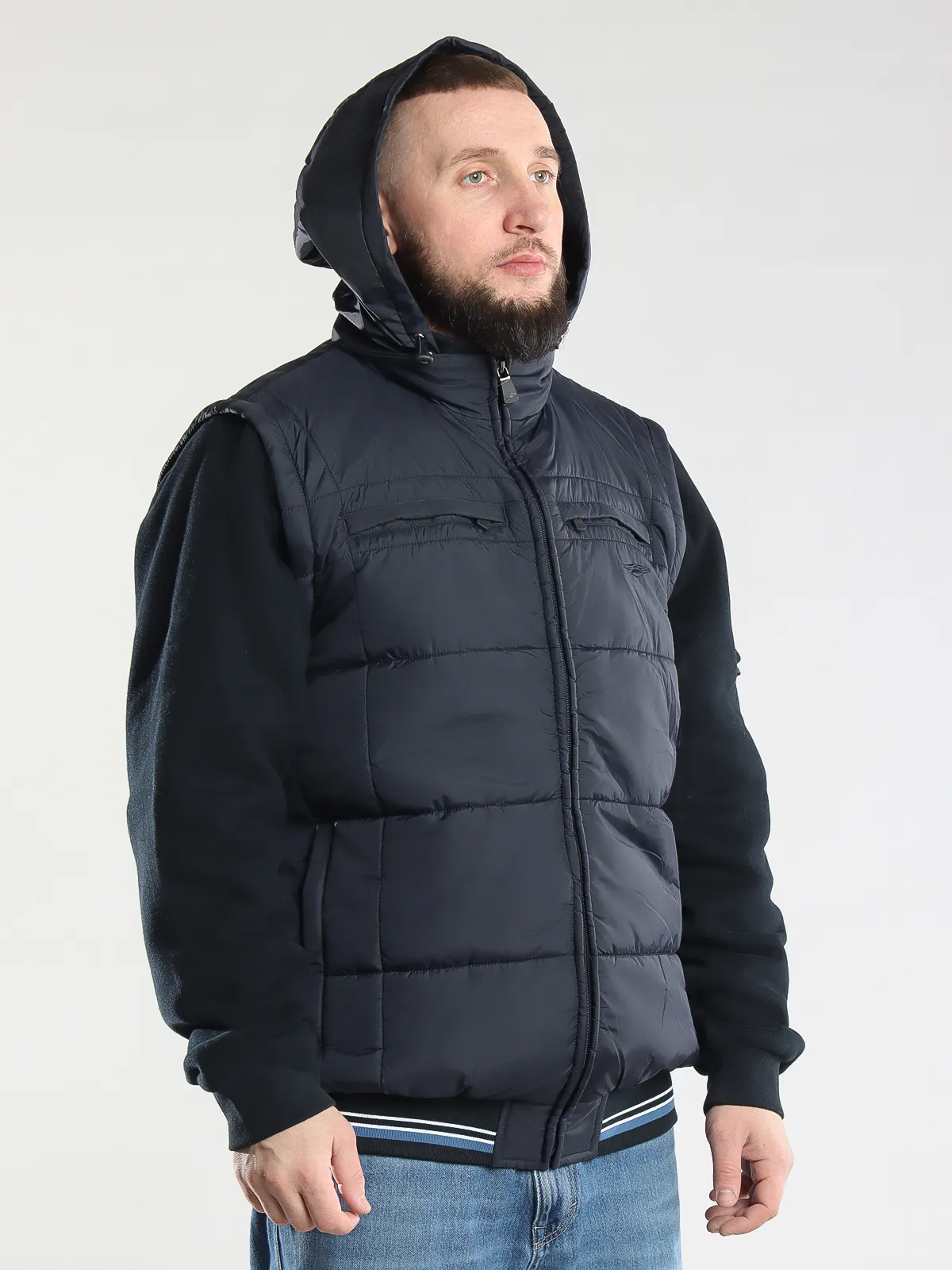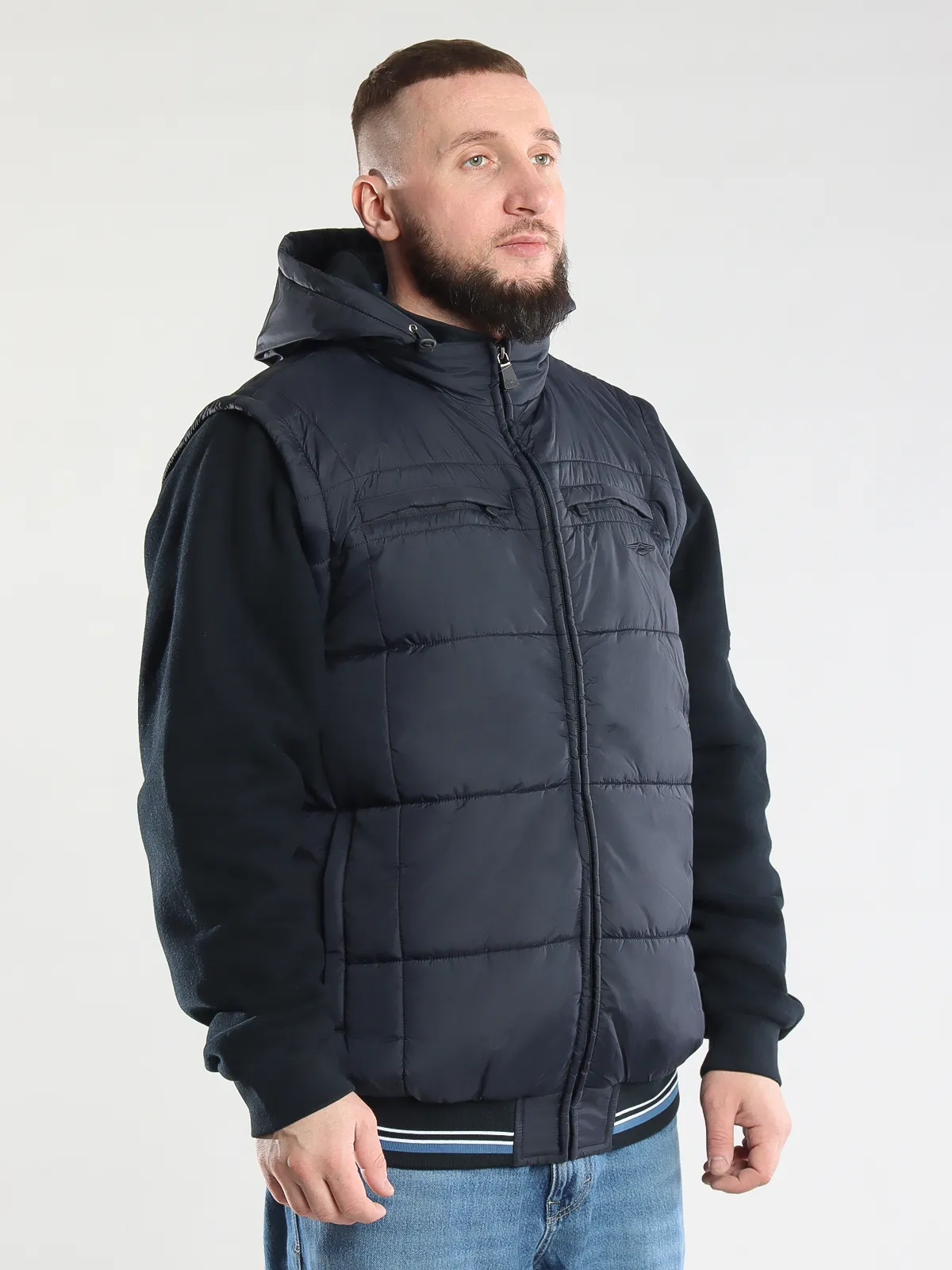 - Отстегивающиеся рукава: куртка легко трансформируется в жилет для удобства в любое время года.