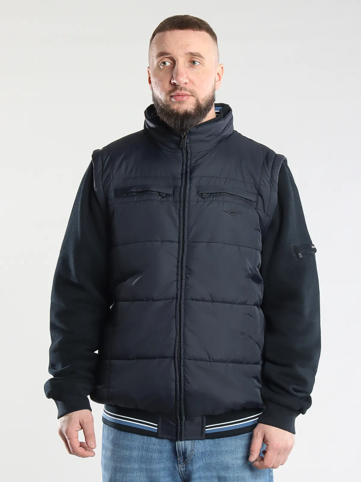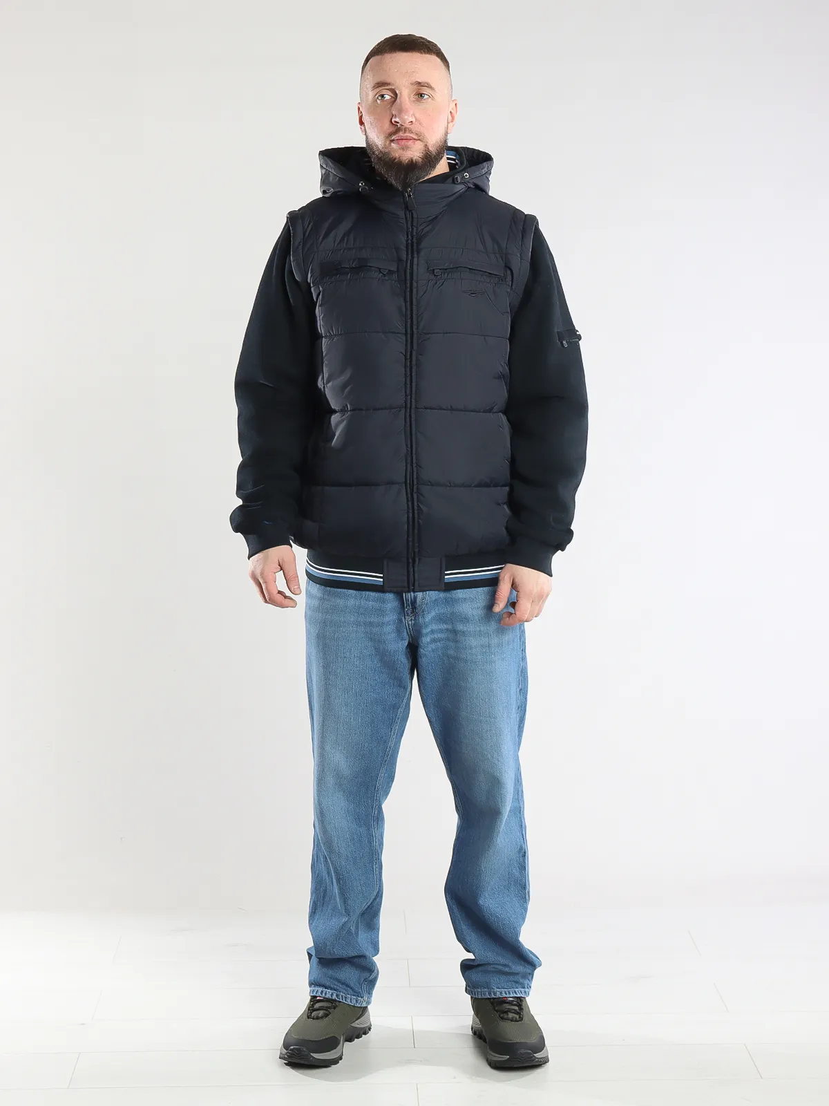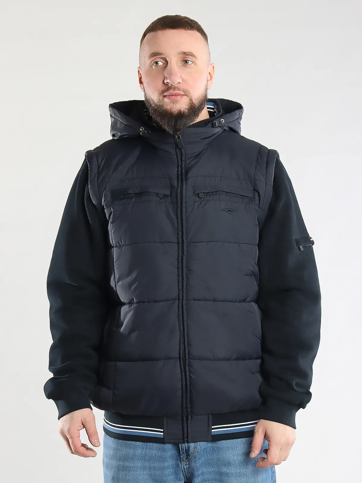 - Отстегивающиеся рукава: куртка легко трансформируется в жилет для удобства в любое время года.