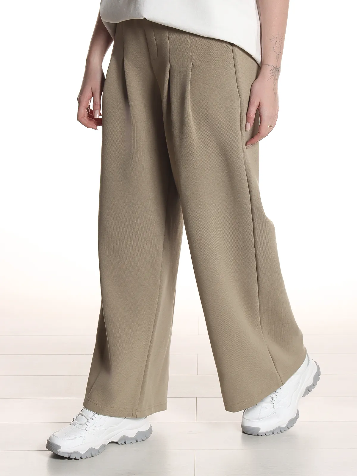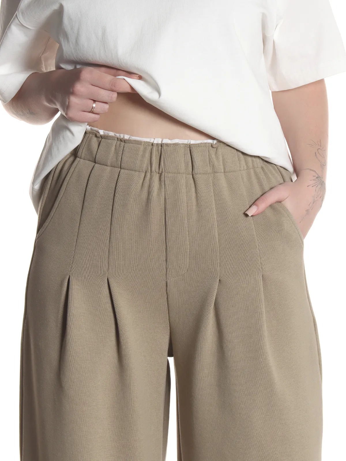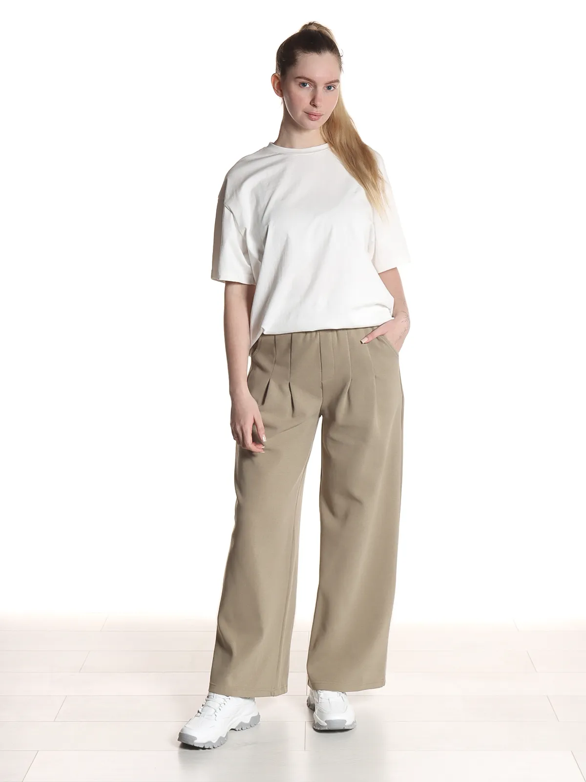 - Пояс: эластичная резинка — для комфортной посадки и свободы движений.