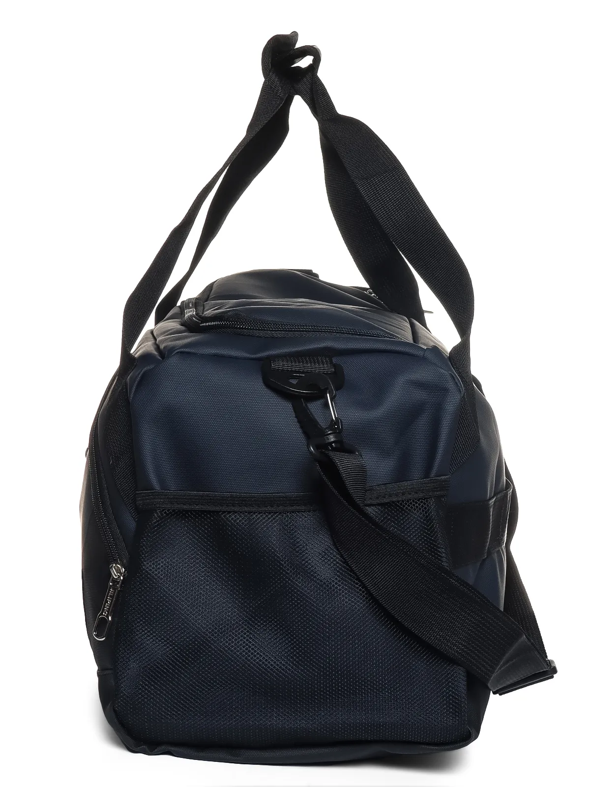 Эта спортивная сумка, выполненная из прочного полиэстера, станет надежным спутником на тренировках, в путешествиях и на каждый день. Вместительное основное отделение в сочетании с дополнительными карманами позволяет организовать хранение всех необходимых вещей. Удобные ручки и съемный ремешок обеспечивают комфорт при носке, а боковые карманы идеально подойдут для мелочей.