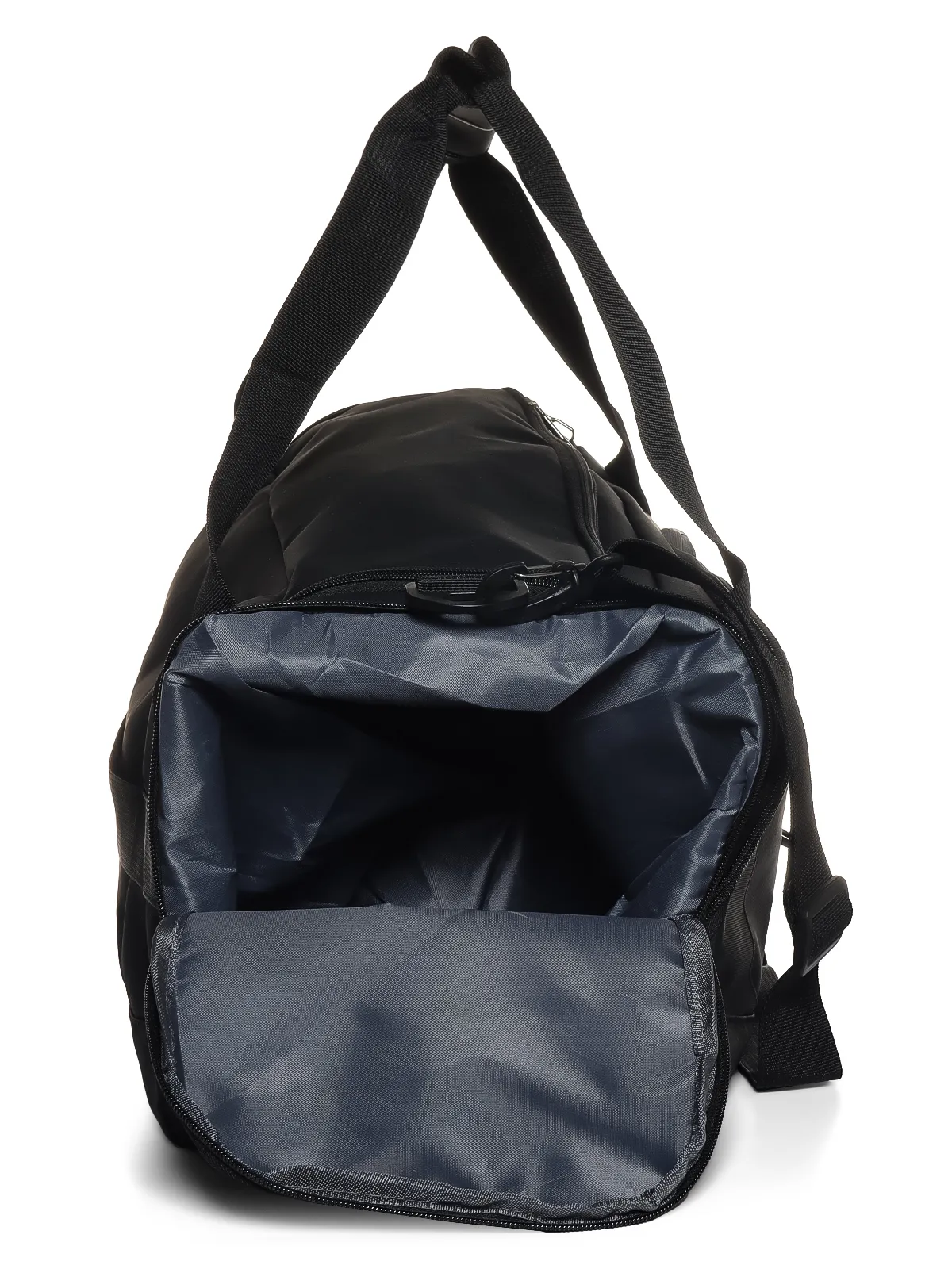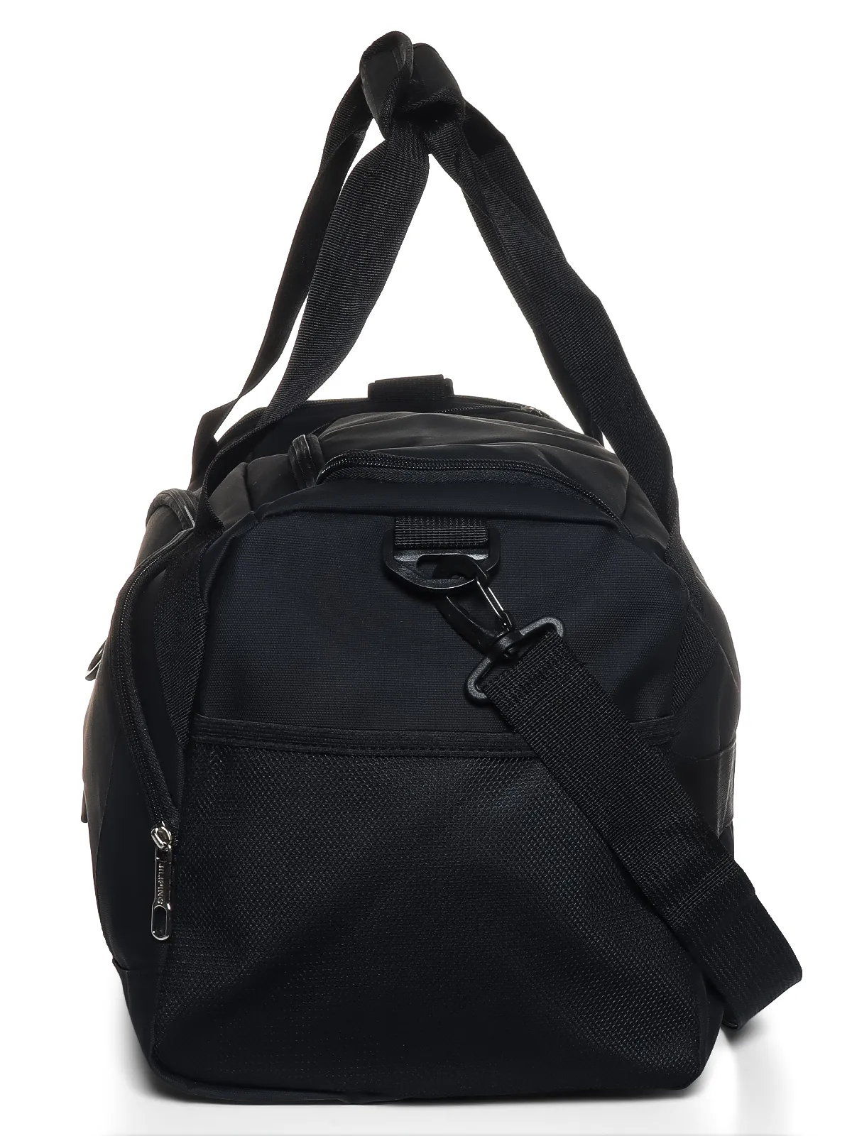 Эта спортивная сумка, выполненная из прочного полиэстера, станет надежным спутником на тренировках, в путешествиях и на каждый день. Вместительное основное отделение в сочетании с дополнительными карманами позволяет организовать хранение всех необходимых вещей. Удобные ручки и съемный ремешок обеспечивают комфорт при носке, а боковые карманы идеально подойдут для мелочей.