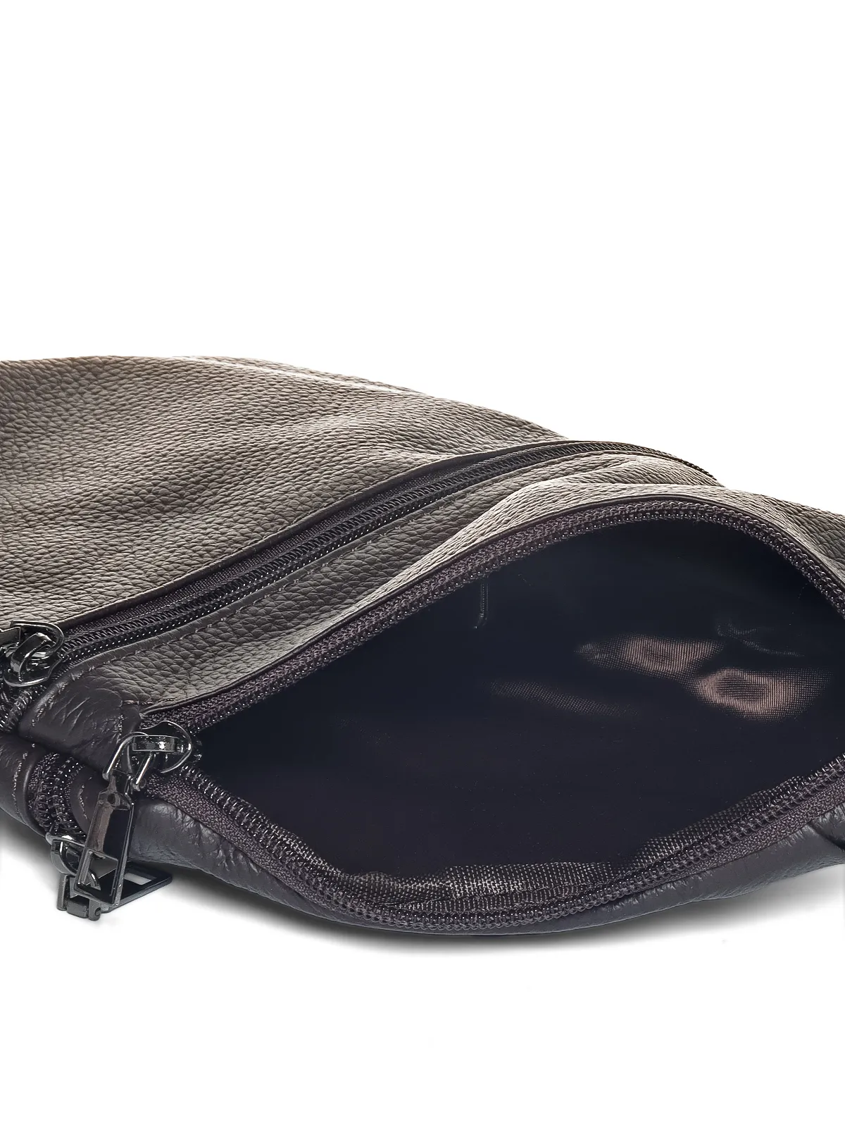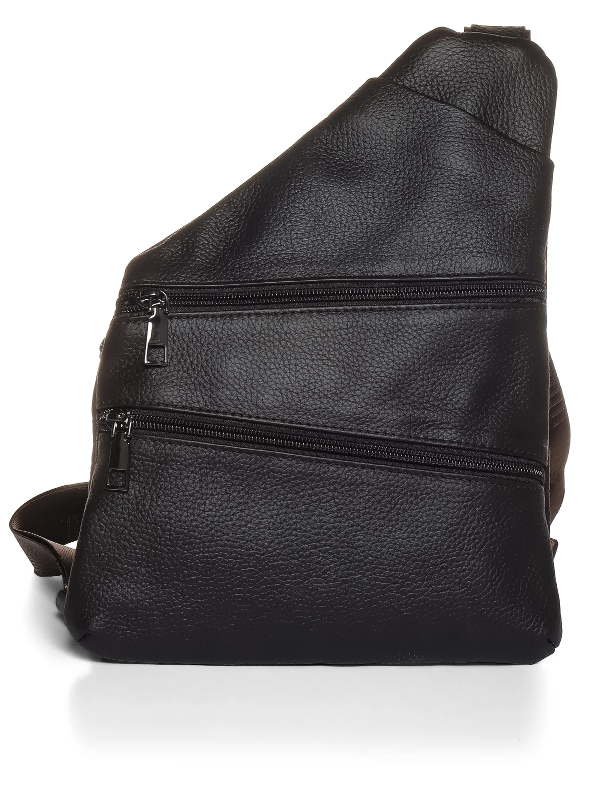 Удобный и функциональный слинг станет отличным выбором для тех, кто ценит комфорт и минимализм. Модель выполнена из прочной натуральной кожи, которая отличается долговечностью и презентабельным внешним видом. Вместительное основное отделение позволяет разместить все необходимое, а дополнительные карманы на молнии обеспечивают удобный доступ к мелочам. На задней стороне расположен карман на молнии для надежного хранения ценных вещей.