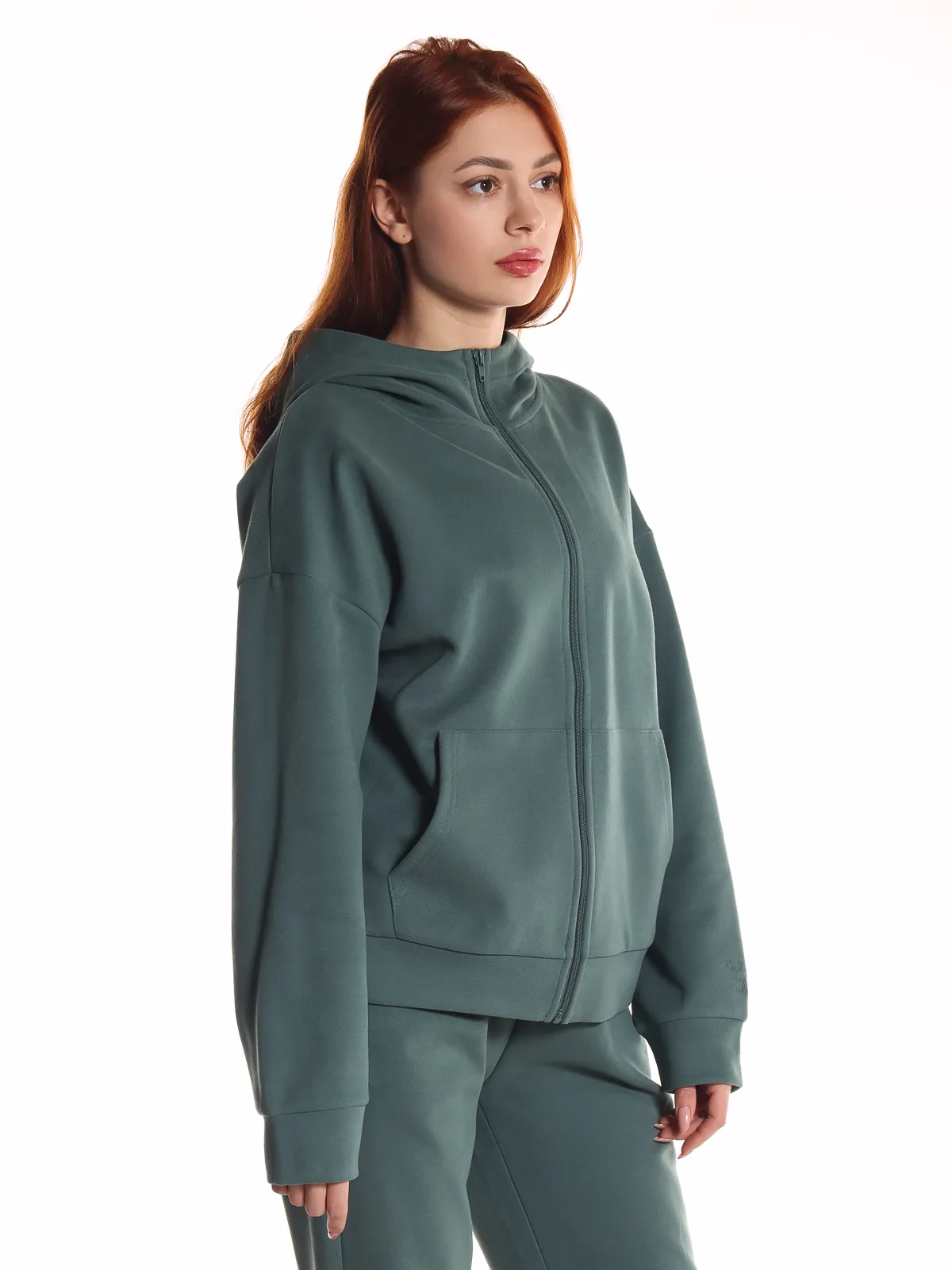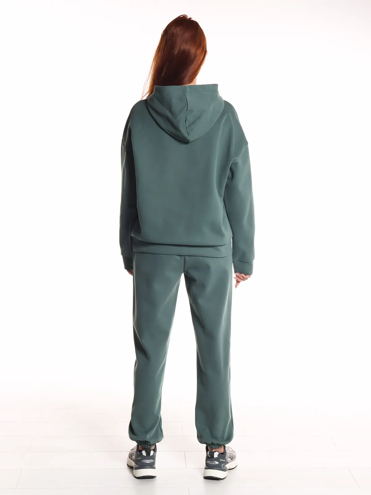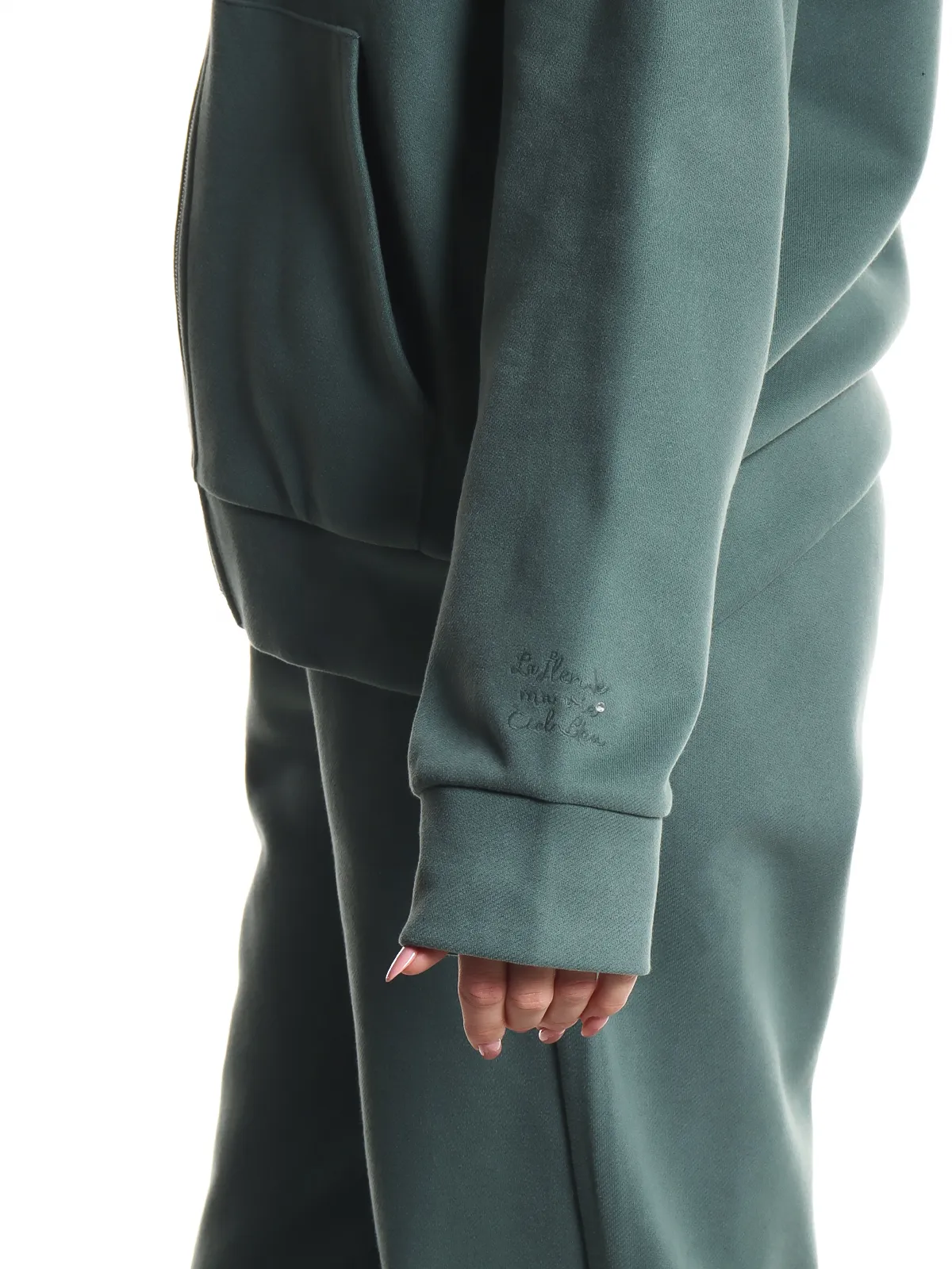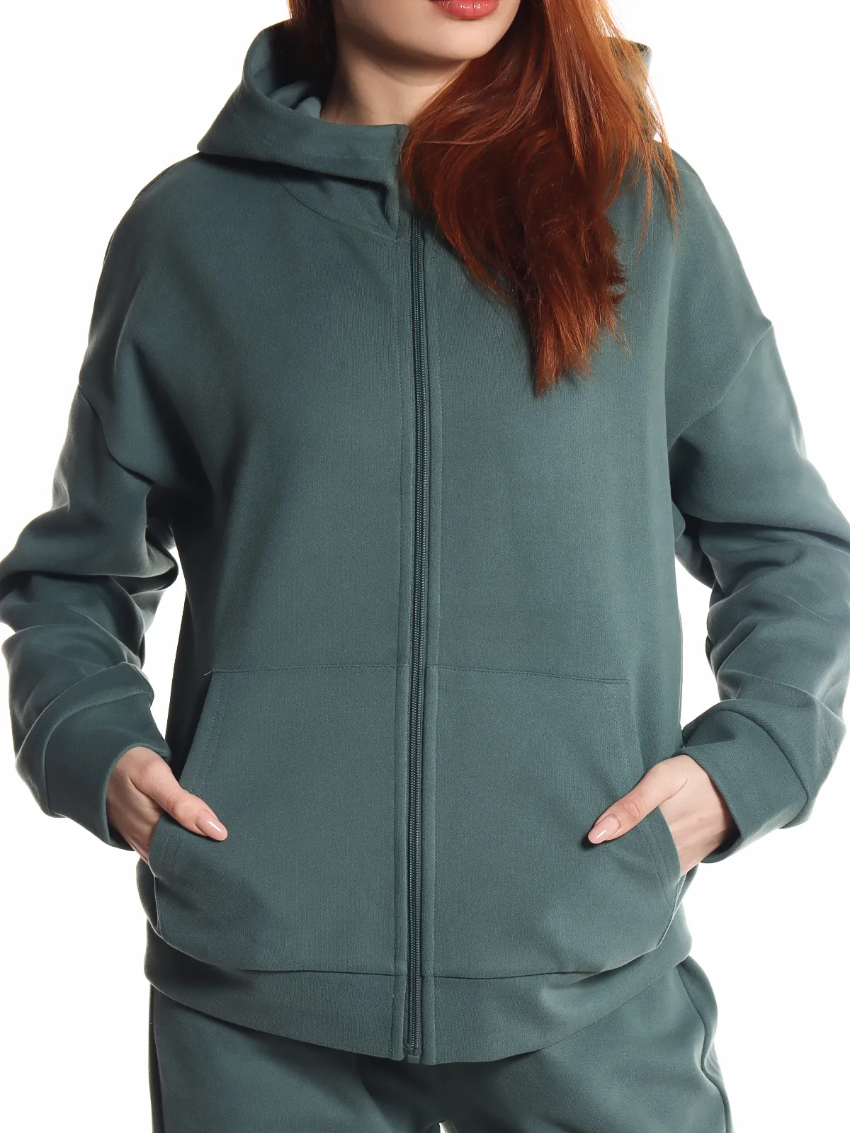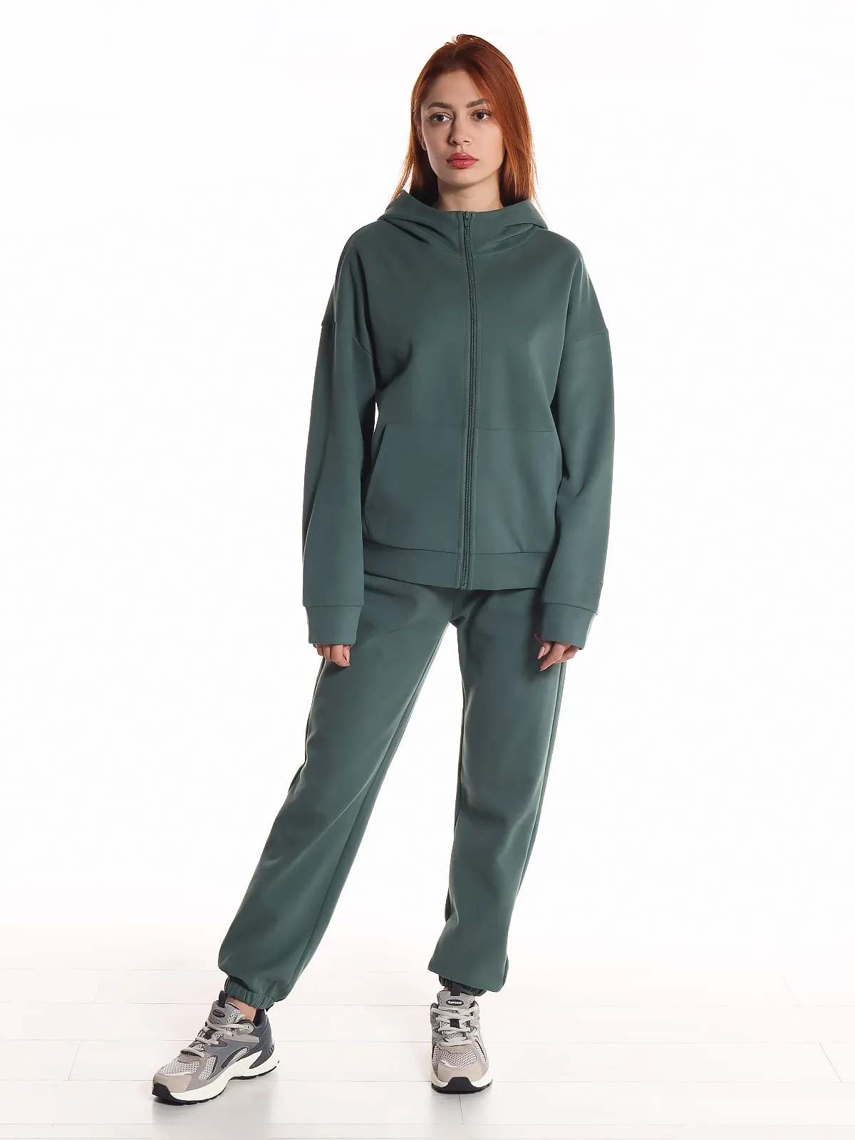 Худи с молнией и капюшоном — удобный элемент, который можно регулировать под погоду. Молния позволяет легко надевать и снимать худи, а капюшон обеспечит защиту от ветра. Боковые карманы на худи и брюках создают дополнительное удобство для хранения мелочей.