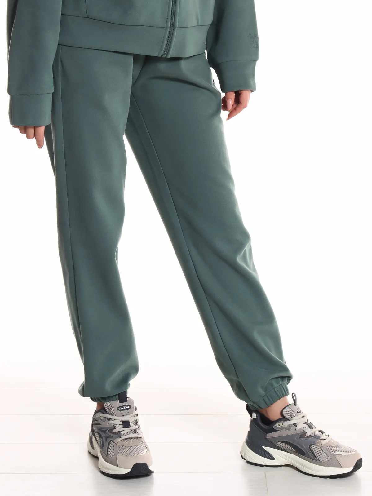 Брюки с эластичным поясом, регулируемым шнурком, обеспечивают идеальную посадку и комфорт, а манжеты на резинке поддерживают форму и не позволяют ткани подниматься. Это делает костюм удобным для любых активностей и повседневного использования.