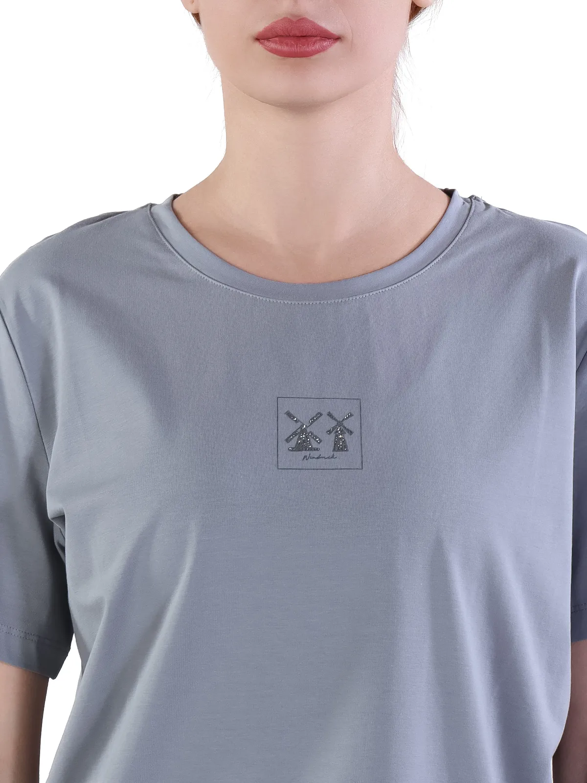 - Универсальность: благодаря круглому вырезу и лаконичному дизайну, эту футболку легко сочетать с другими вещами, создавая разнообразные образы для любого случая.