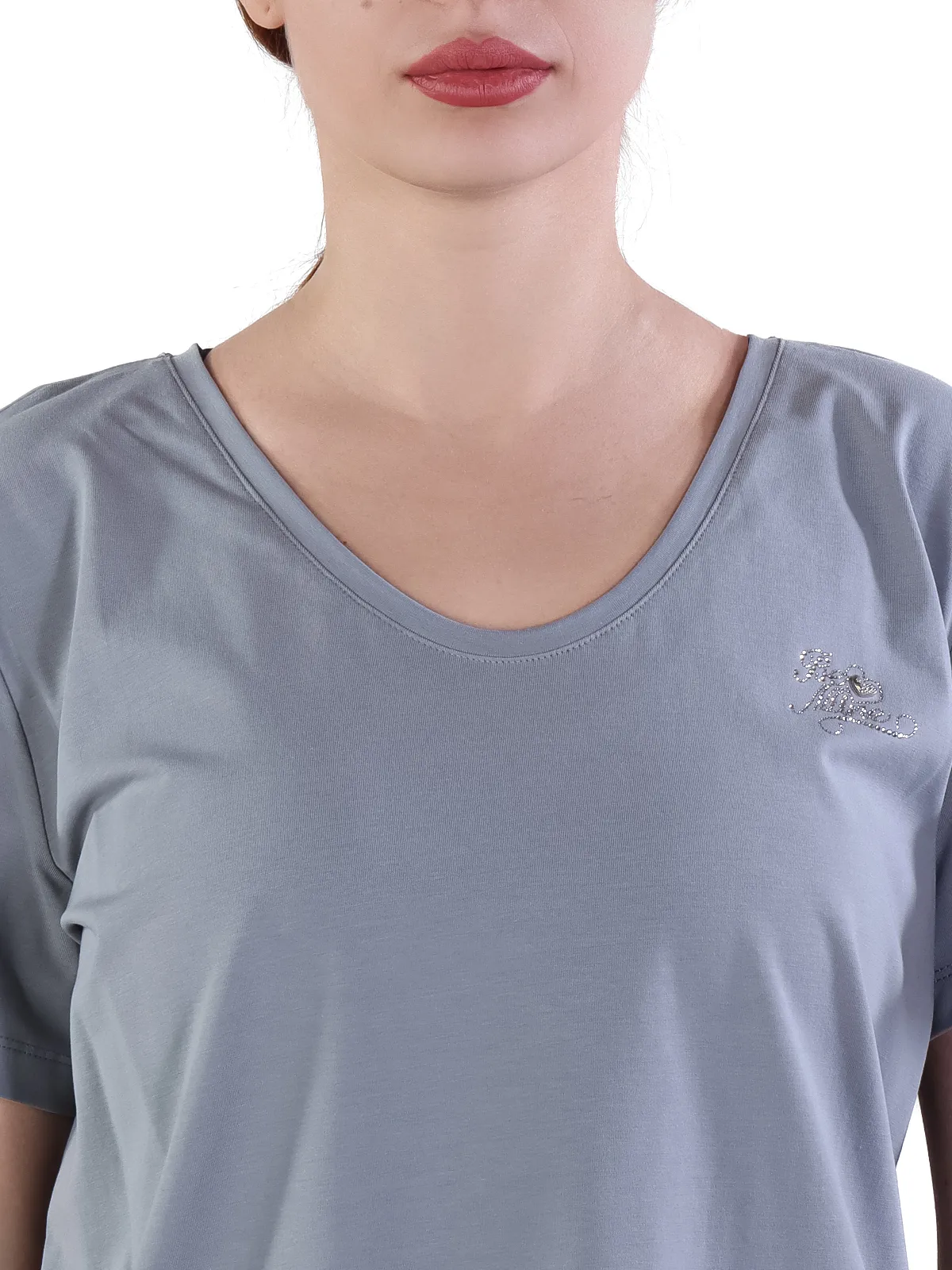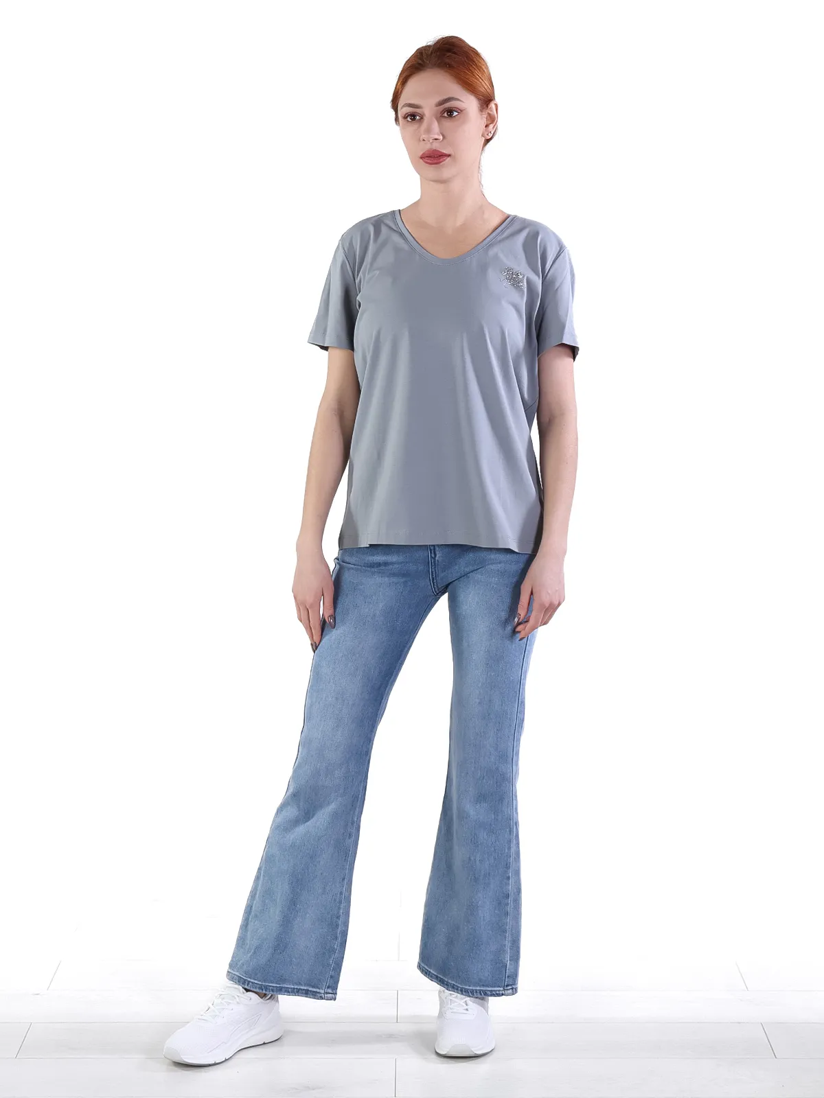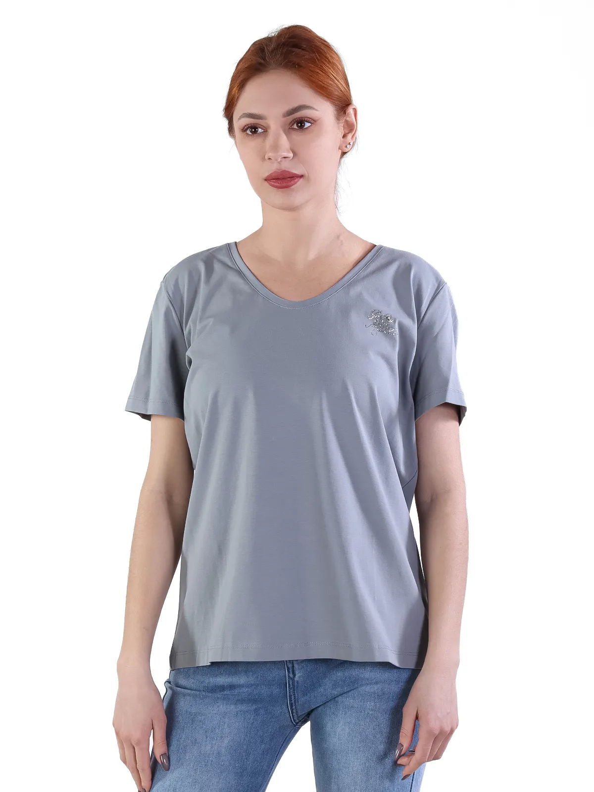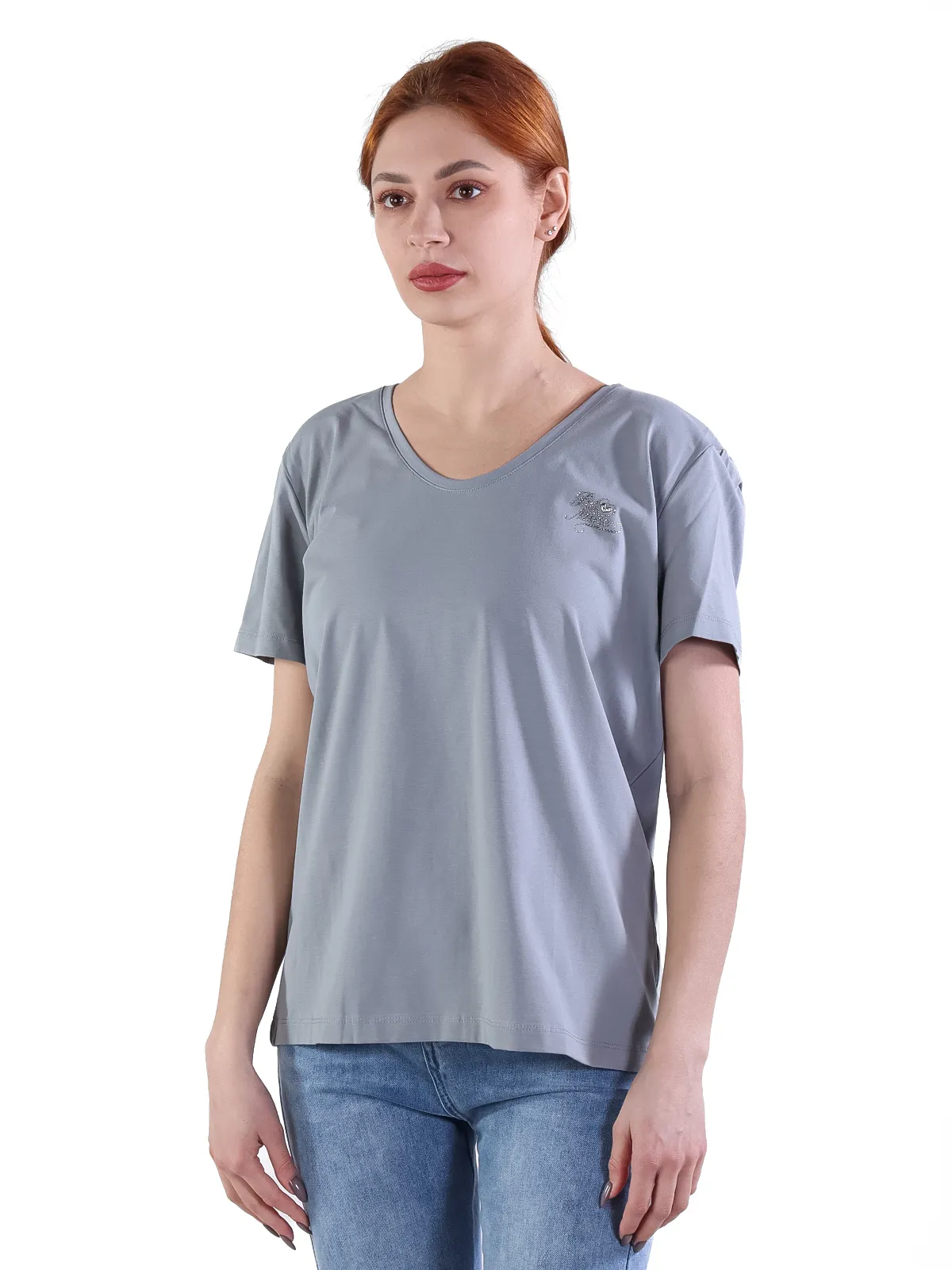 - Универсальность: благодаря V-образному вырезу и лаконичному дизайну, эту футболку легко сочетать с различными элементами гардероба, создавая образы для разных случаев.