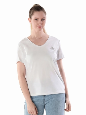 • Универсальность: благодаря V-образному вырезу и лаконичному дизайну, эту футболку легко сочетать с различными элементами гардероба, создавая образы для разных случаев.