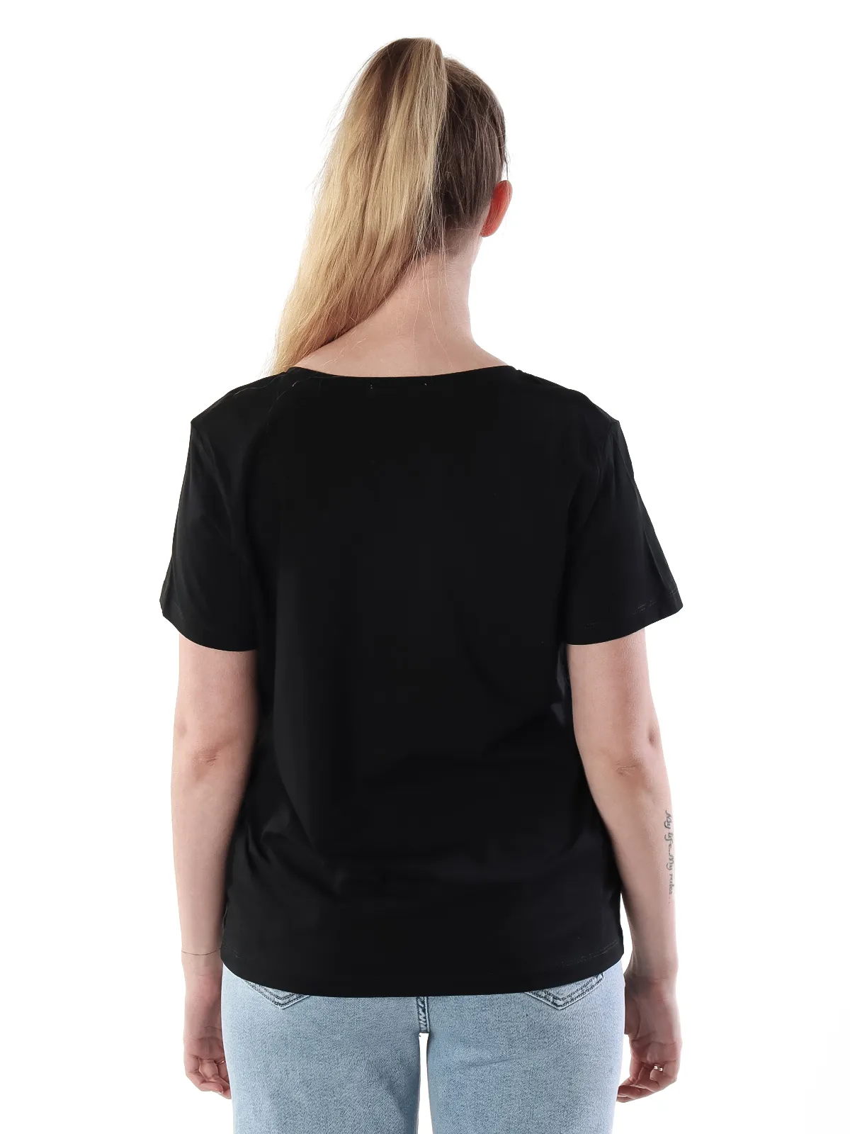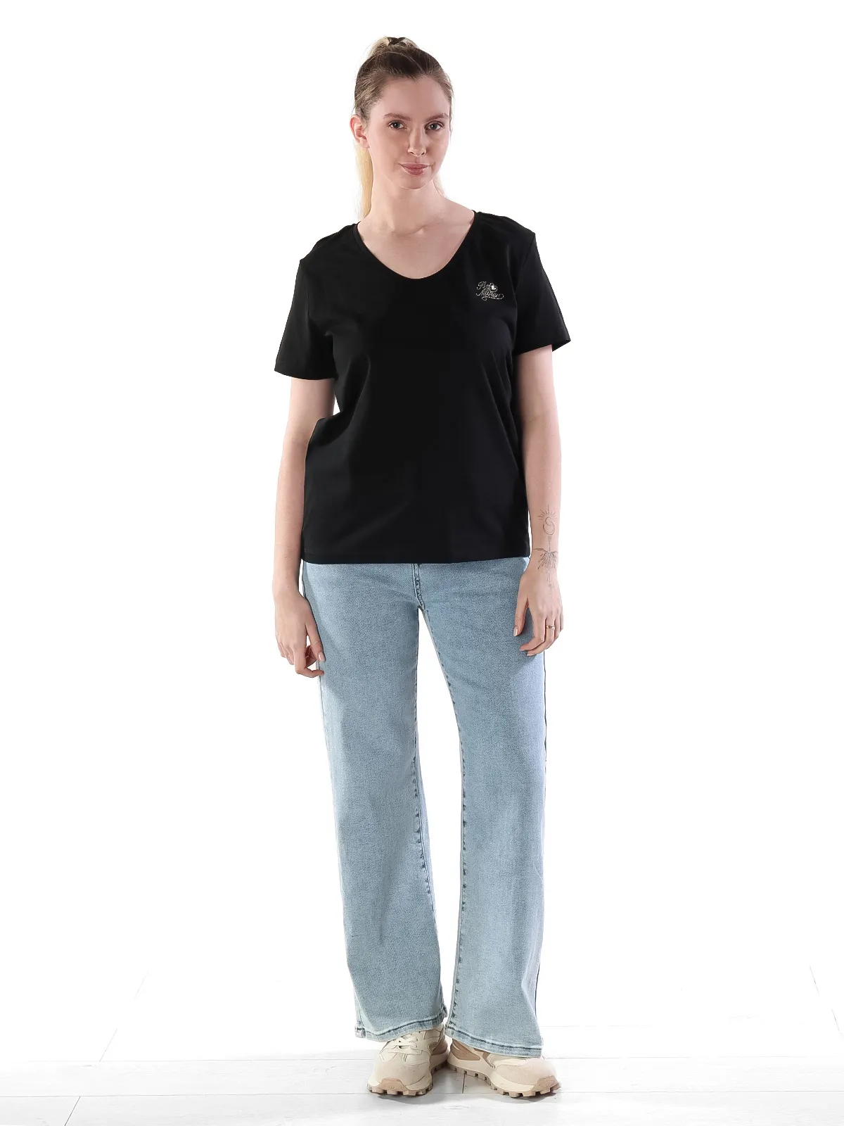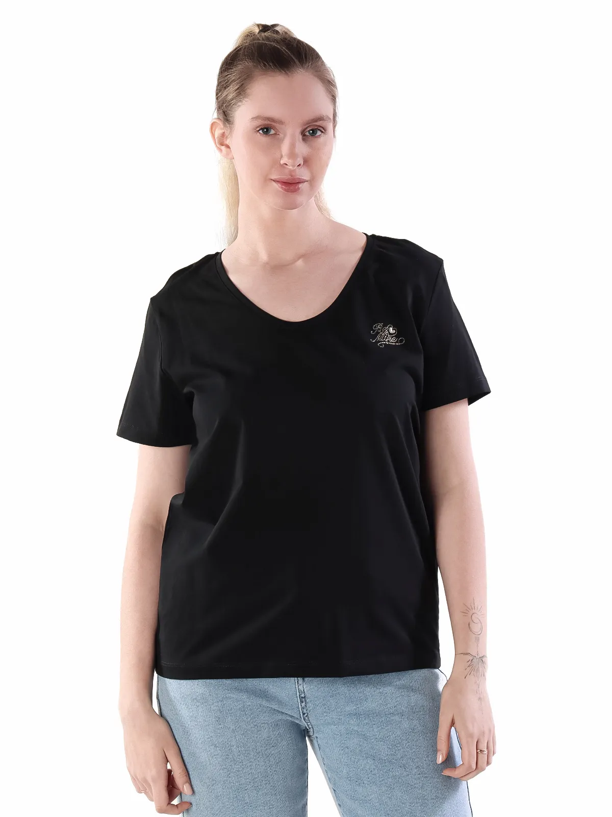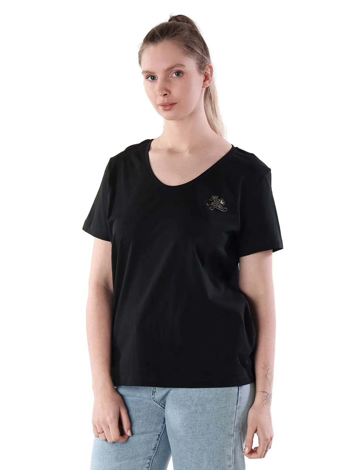• Универсальность: благодаря V-образному вырезу и лаконичному дизайну, эту футболку легко сочетать с различными элементами гардероба, создавая образы для разных случаев.