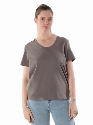 • Универсальность: благодаря V-образному вырезу и лаконичному дизайну, эту футболку легко сочетать с различными элементами гардероба, создавая образы для разных случаев.