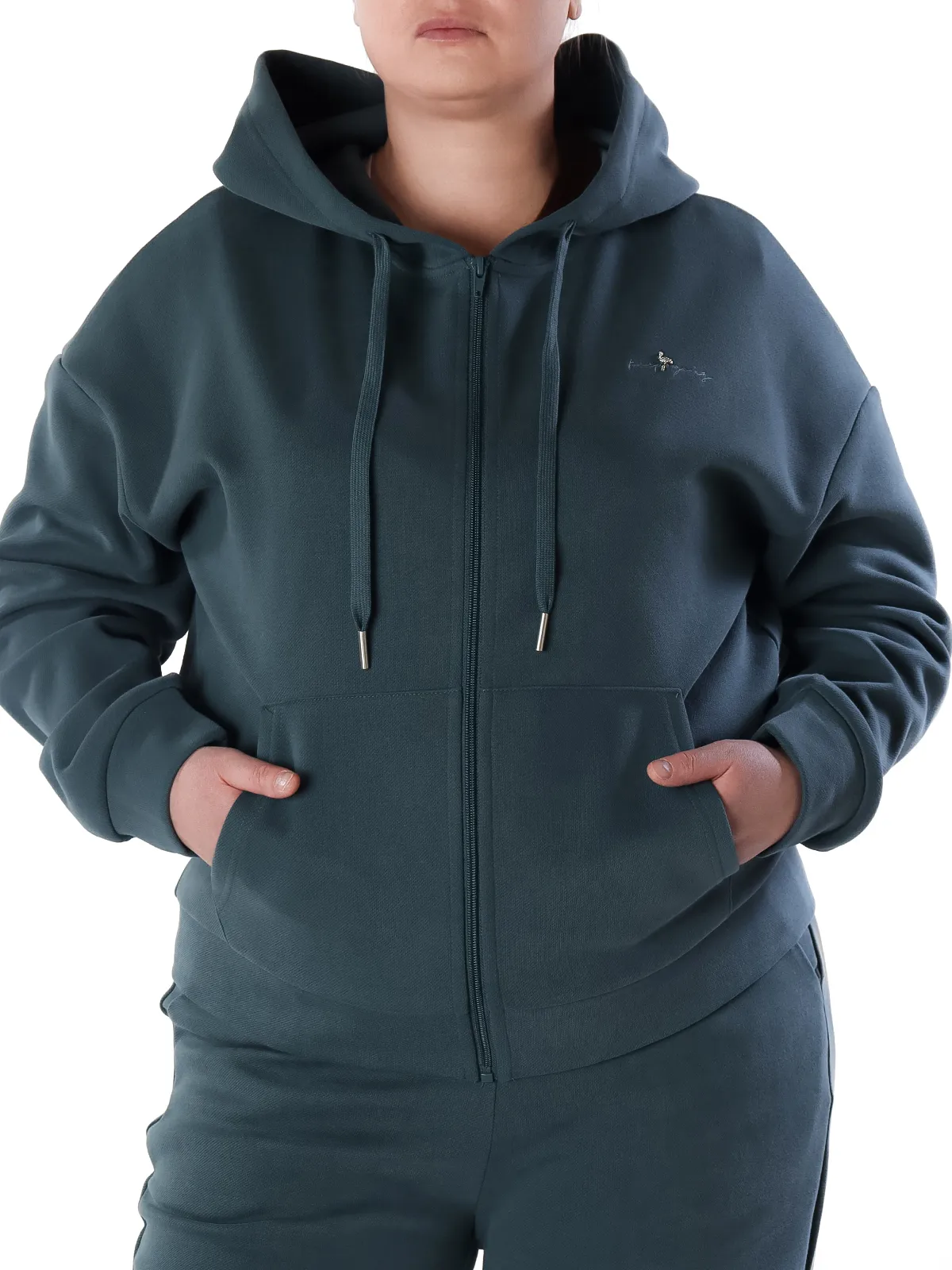 Женский спортивный костюм WHOLE & FOLKS — это воплощение комфорта и практичности для каждого дня. Толстовка на молнии с капюшоном и брюки прямого кроя с регулируемым поясом гарантируют идеальную посадку и свободу движений. Этот костюм станет незаменимым элементом вашего повседневного гардероба.
