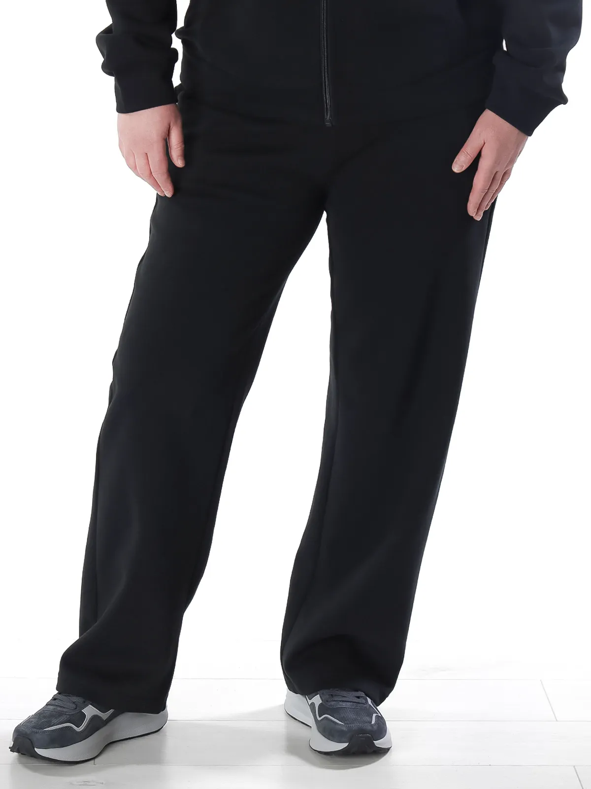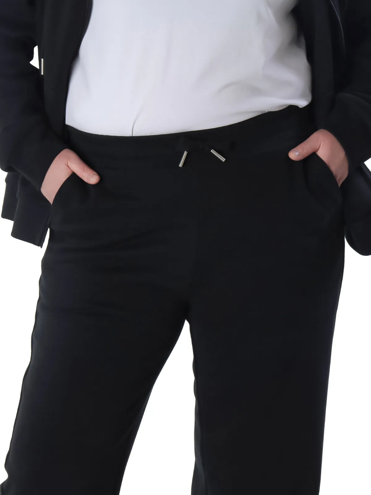 • Брюки: прямого кроя, с боковыми карманами и эластичным поясом, регулируемым шнурком для идеальной посадки.