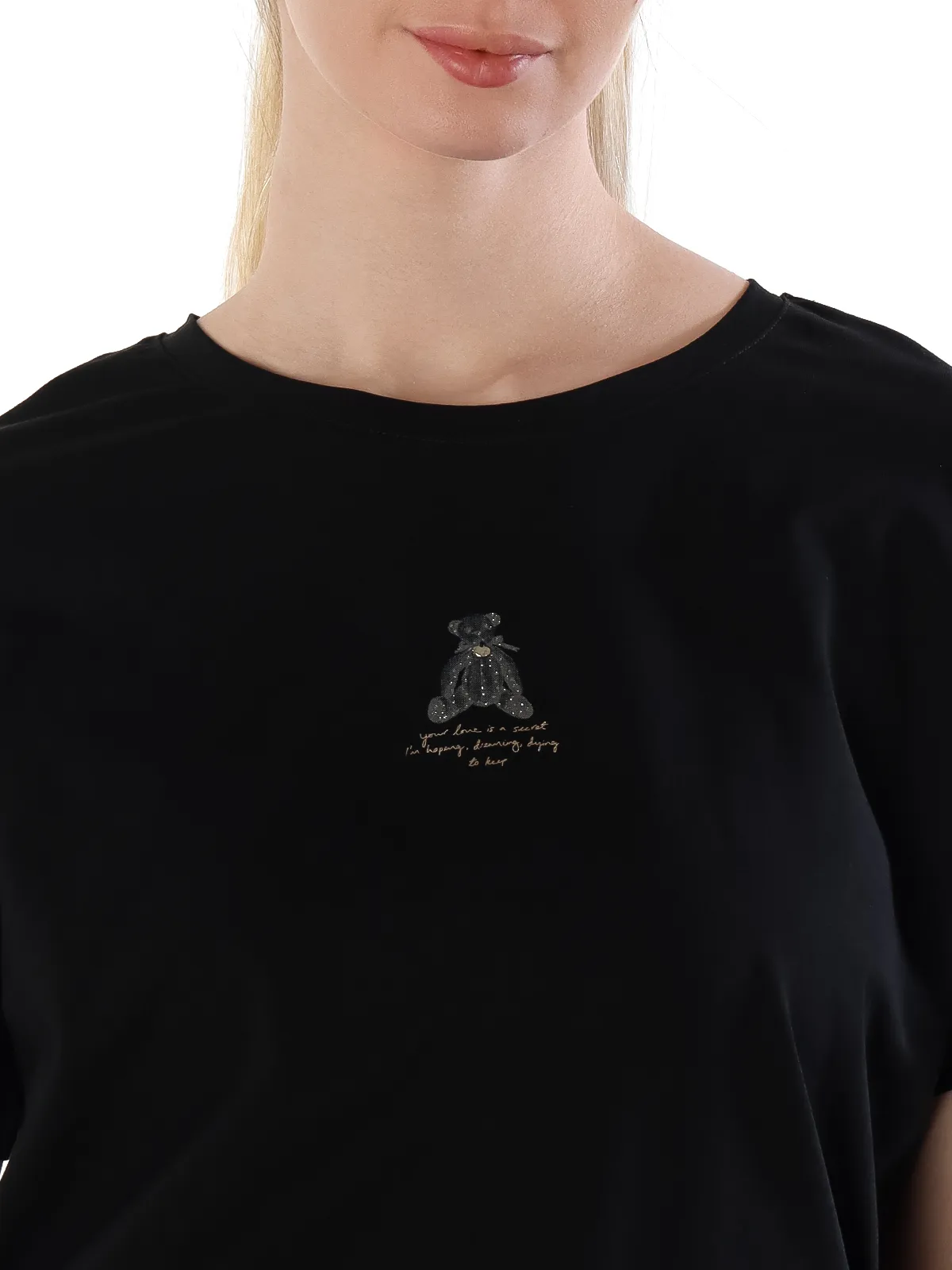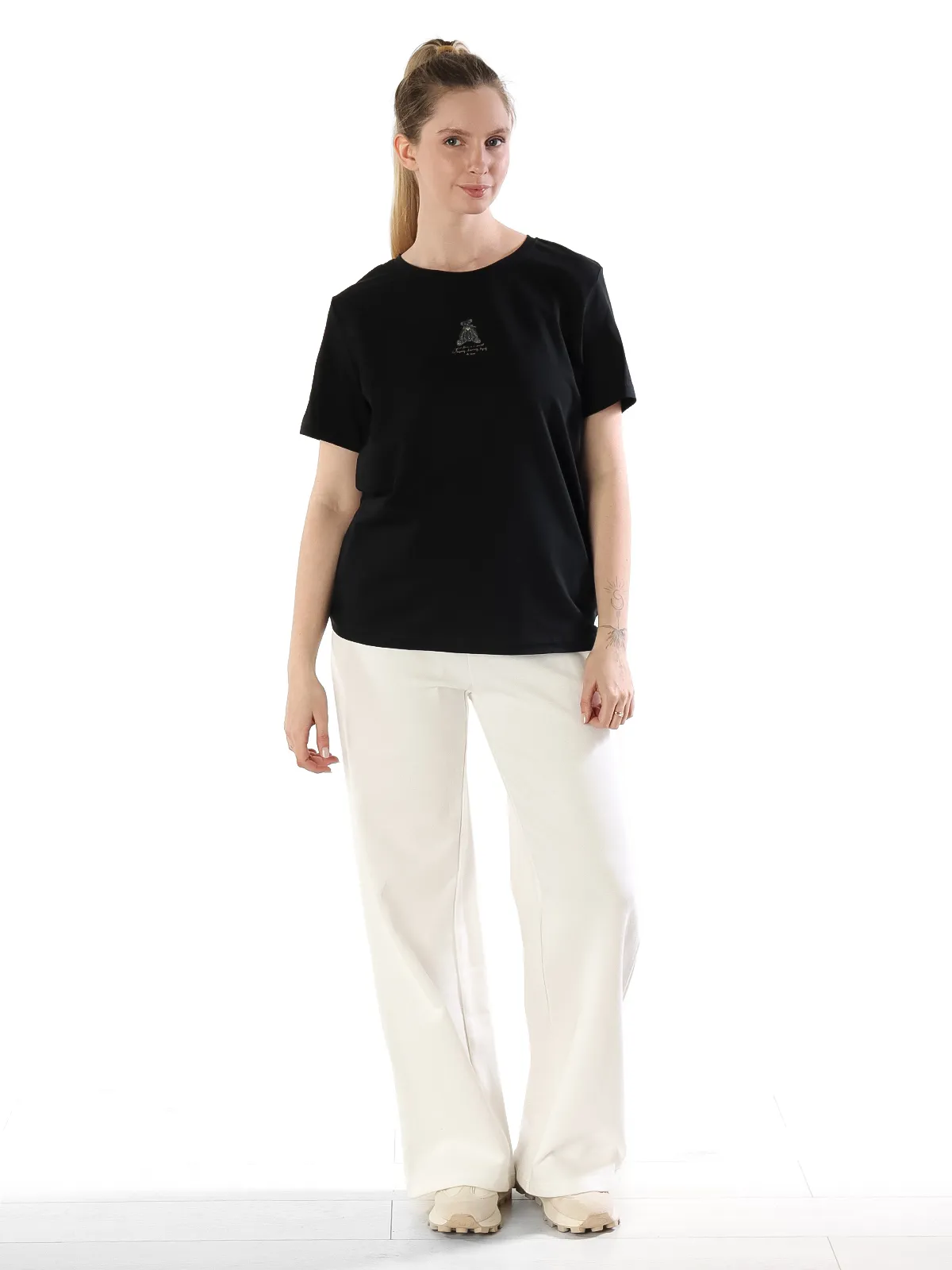 • Универсальность: благодаря круглому вырезу и лаконичному дизайну, эту футболку легко сочетать с другими вещами, создавая разнообразные образы для любого случая.