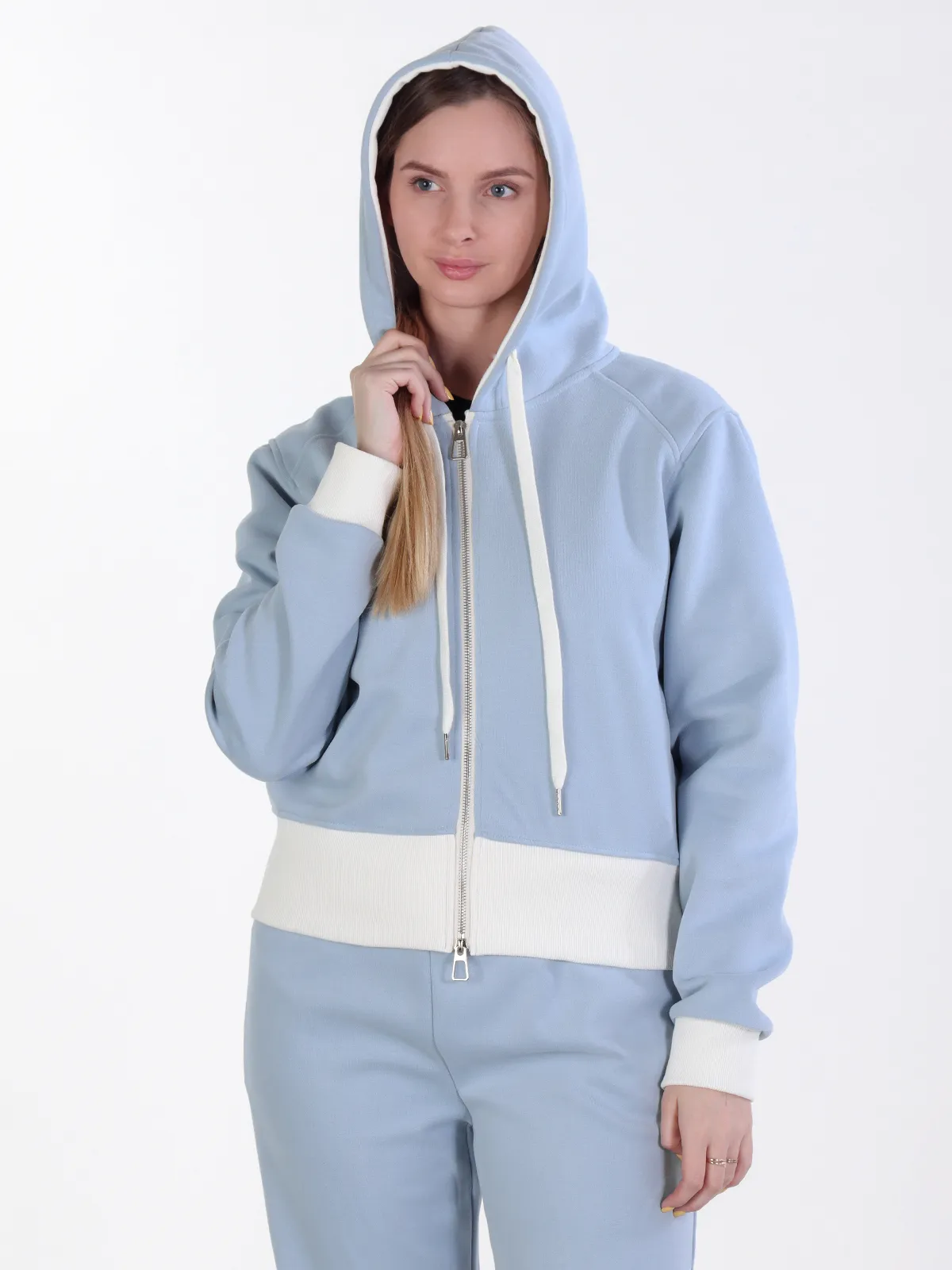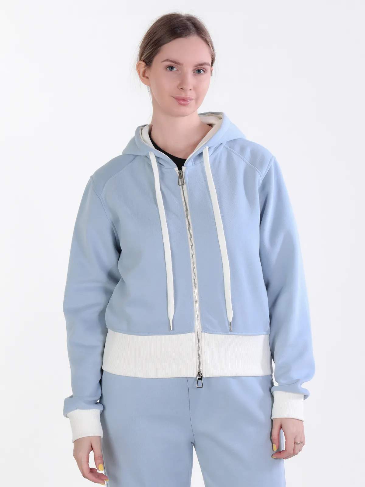 • Толстовка: модель на молнии с удобным капюшоном, дополнена мягкими манжетами для дополнительного комфорта.